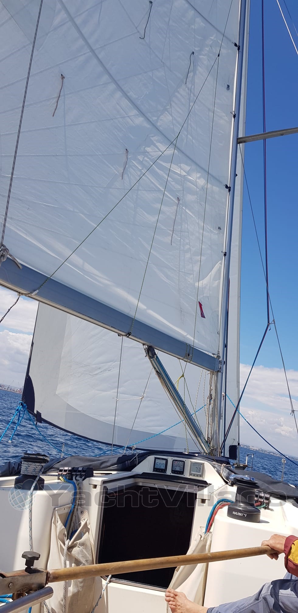 Sechs Winden und der "deutsche" geteilte Großschotenkurs sind einige der wettbewerbsfähigen Lösungen, die bei diesem Kabinenkreuzer verwendet werden, der in allen Gangarten schnell ist und starke Gegenwindeigenschaften aufweist.