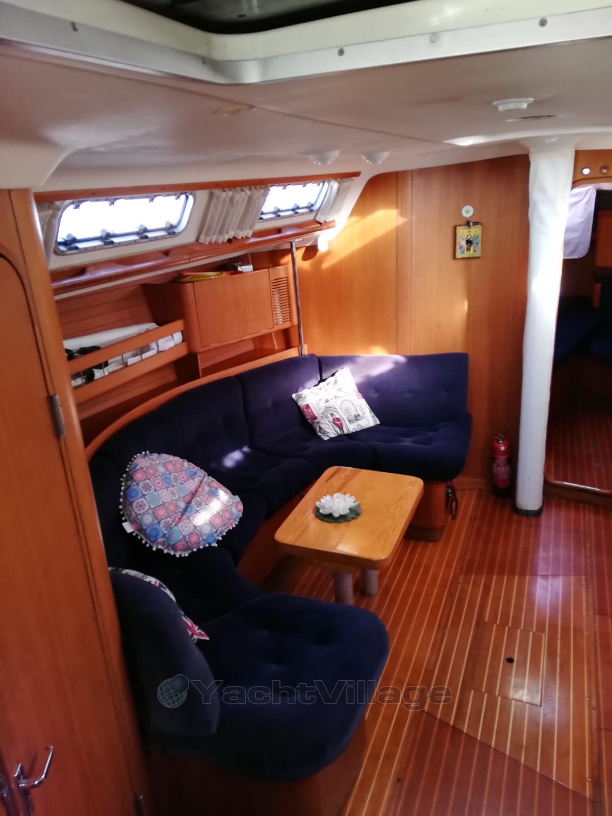 Die Innenräume sind mit Teakholz bedeckt. Der Sitz des halbkreisförmigen Quadrats befindet sich links, vor der Kombüse an der Seite und dem ausgestatteten Kartentisch.