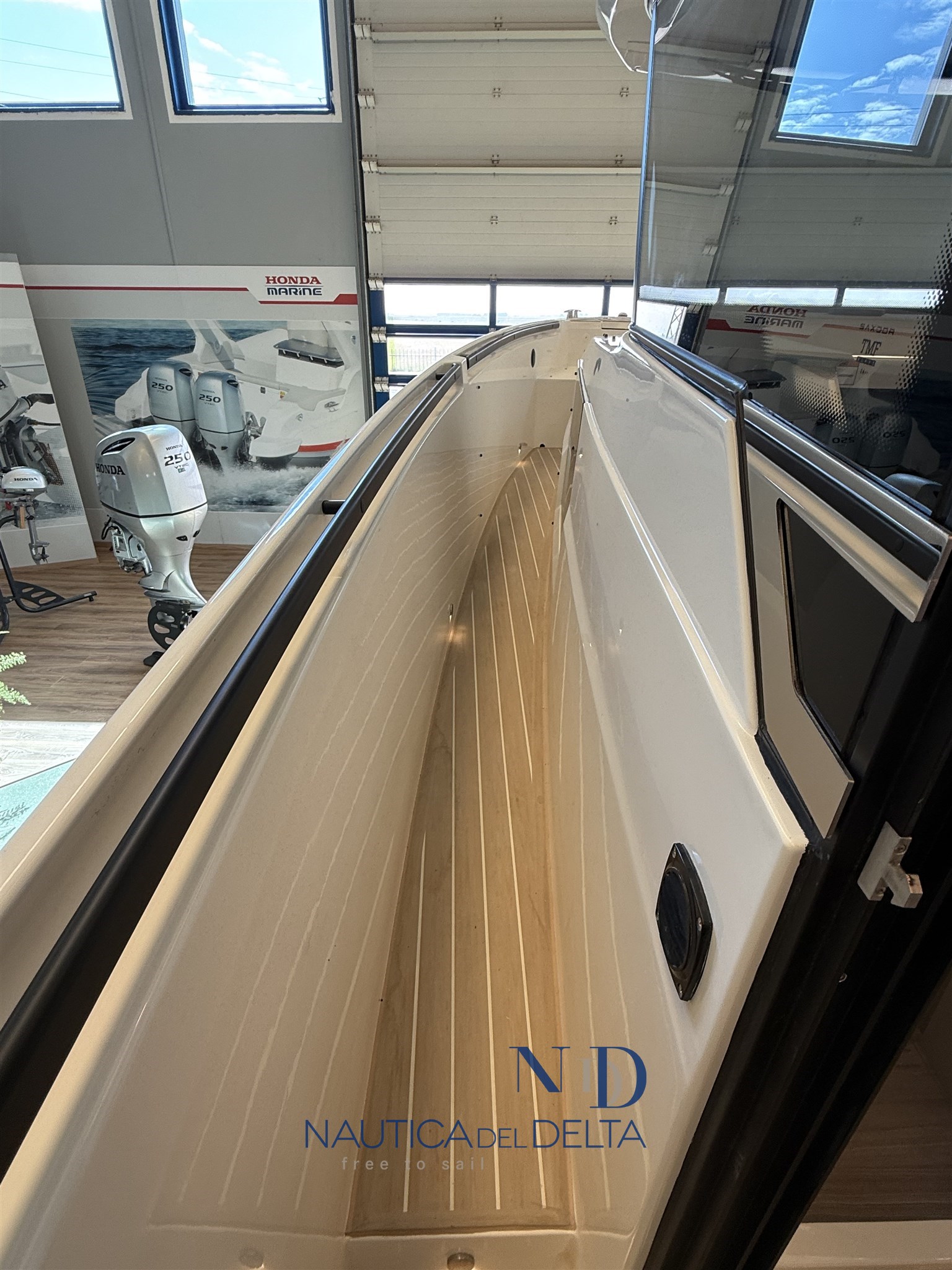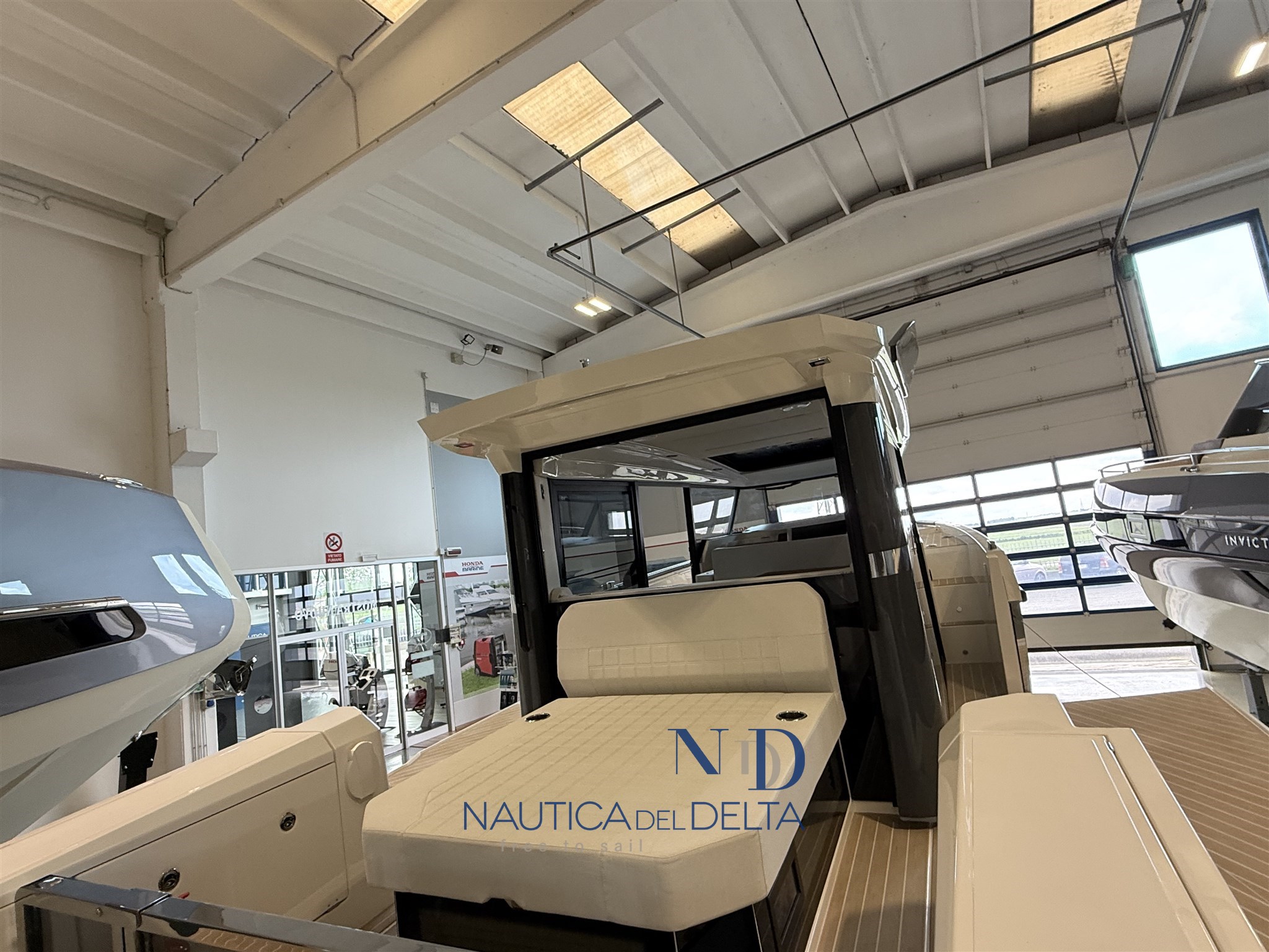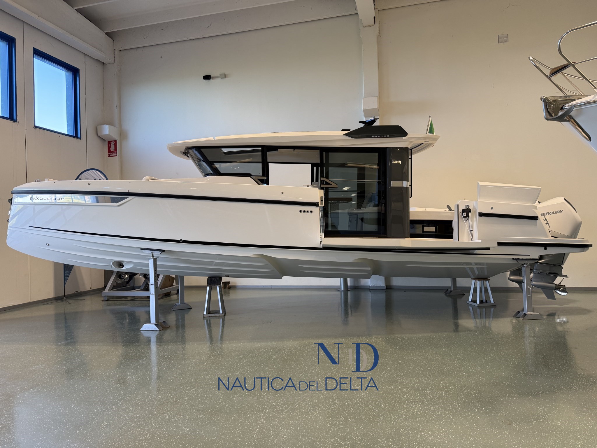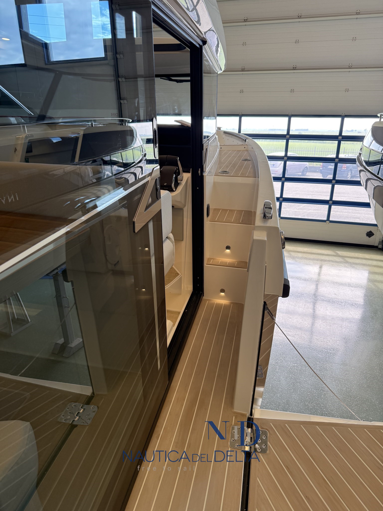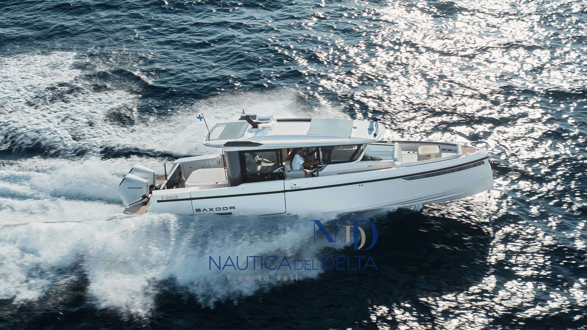 Boot voll optional konfiguriert: weiße 2x300 Mercury-Motoren, Klimaanlage mit Wechselrichter und Lithiumbatterien, Flexiteek, Bugstrahlruder, elektrisches Schiebedach, Achterkabinenbeschlag, automatische Zipwake-Klappen, Achtergrill, Kühlschrank, Navigationspaket, Hecktore.