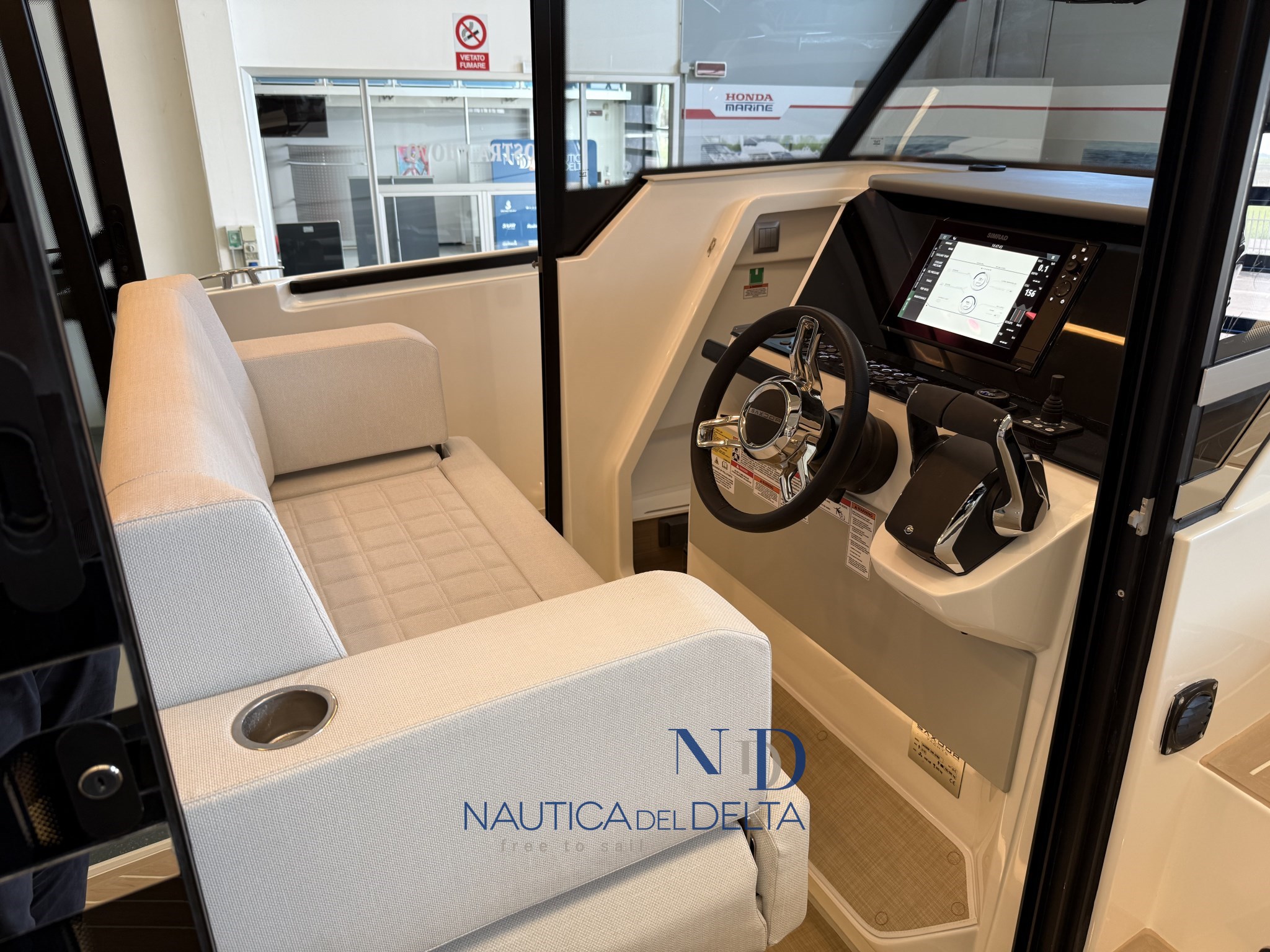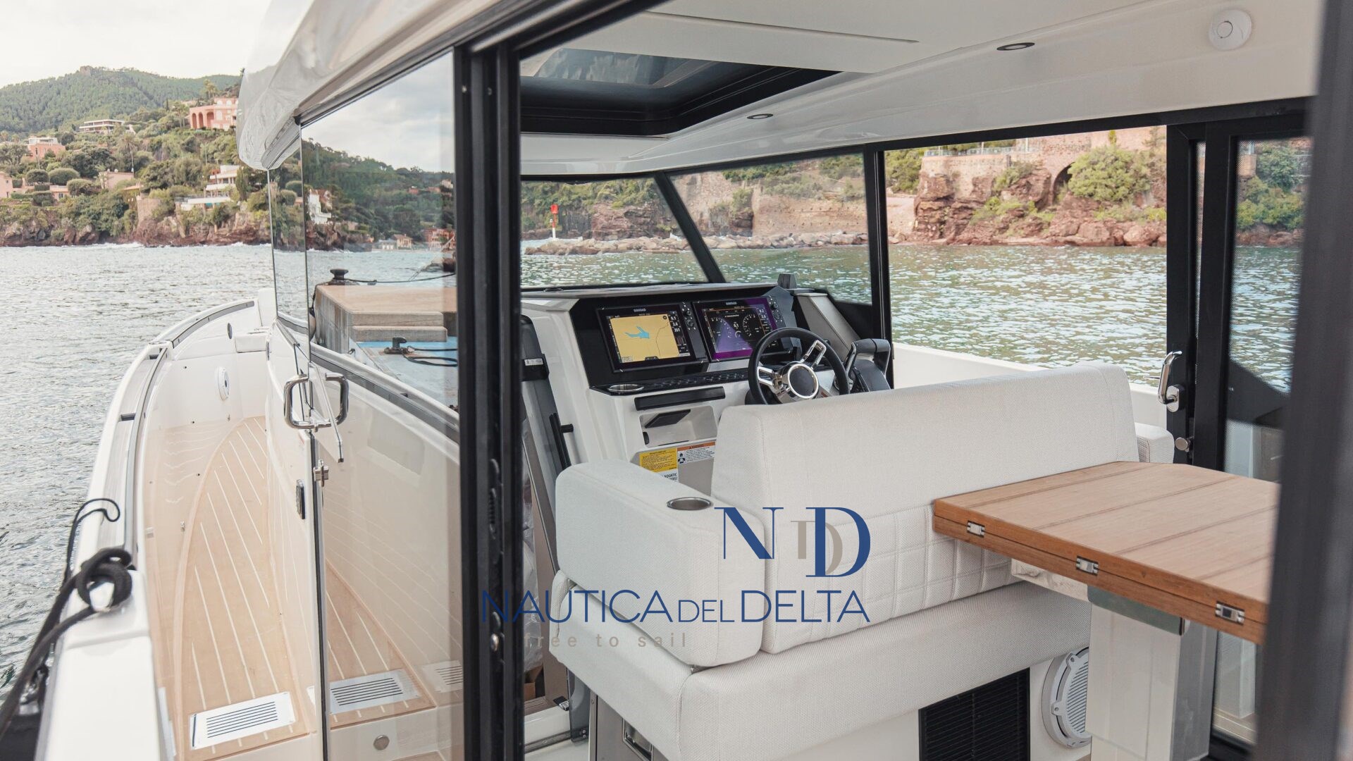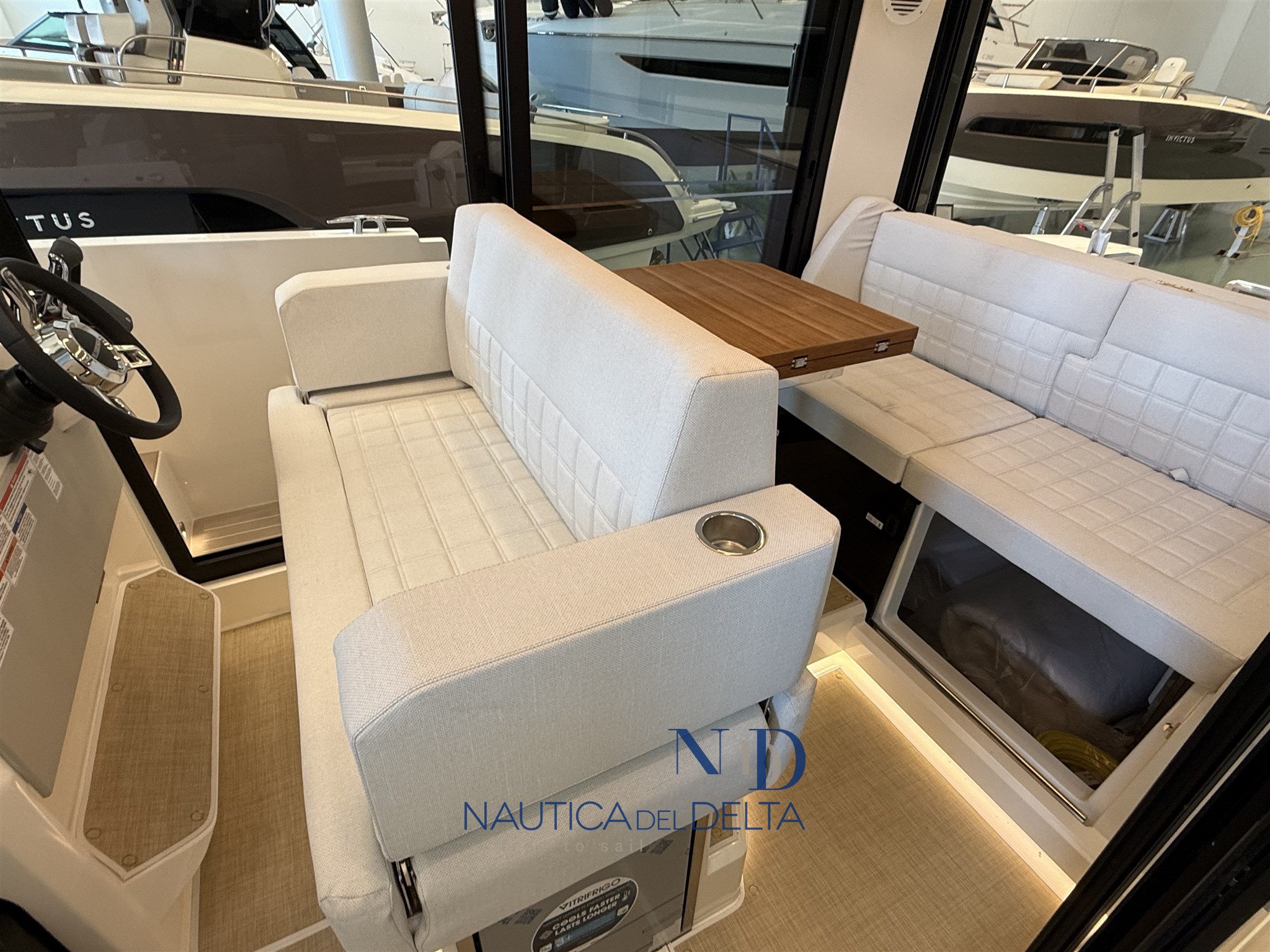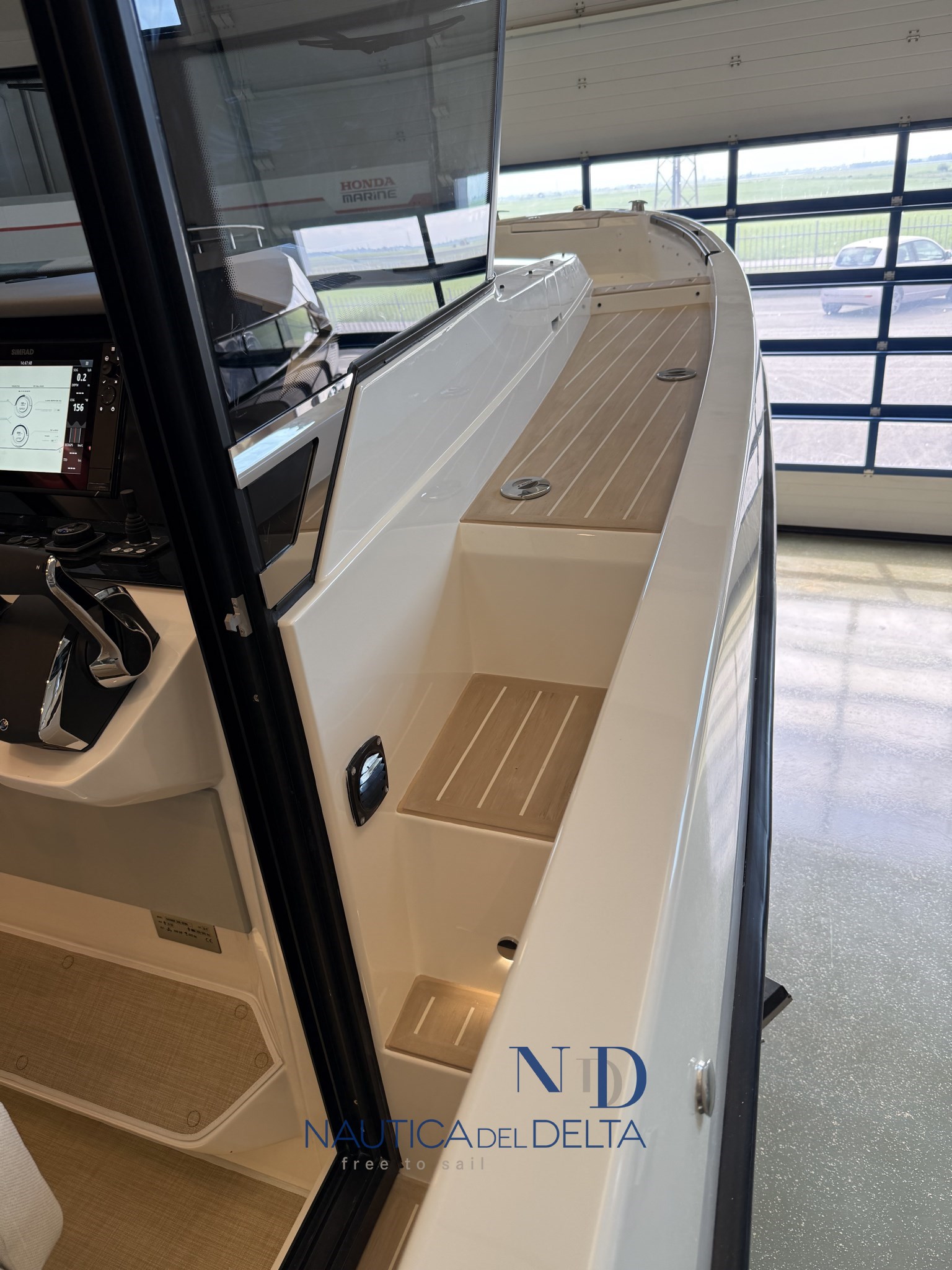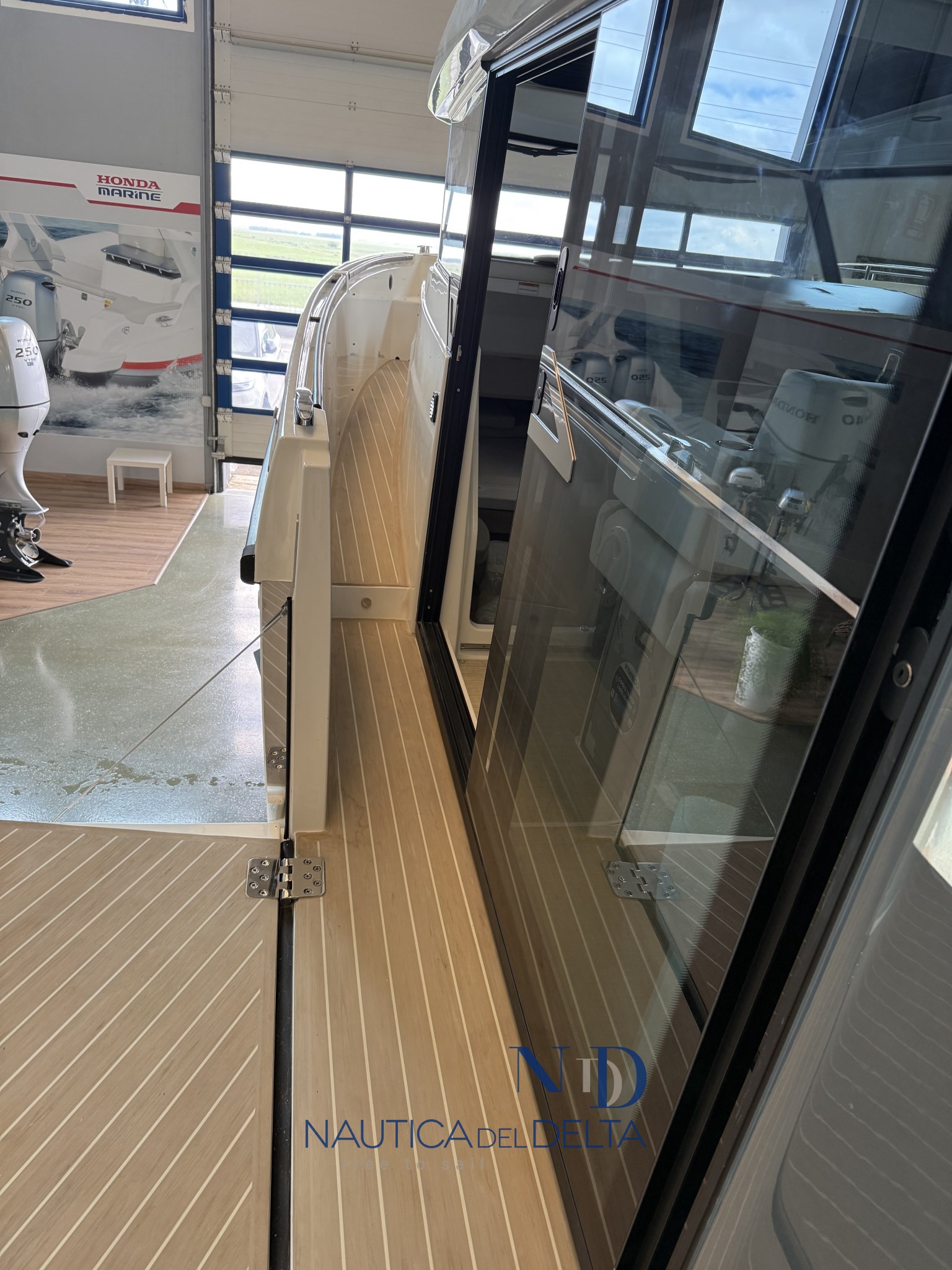Boot voll optional konfiguriert: weiße 2x300 Mercury-Motoren, Klimaanlage mit Wechselrichter und Lithiumbatterien, Flexiteek, Bugstrahlruder, elektrisches Schiebedach, Achterkabinenbeschlag, automatische Zipwake-Klappen, Achtergrill, Kühlschrank, Navigationspaket, Hecktore.