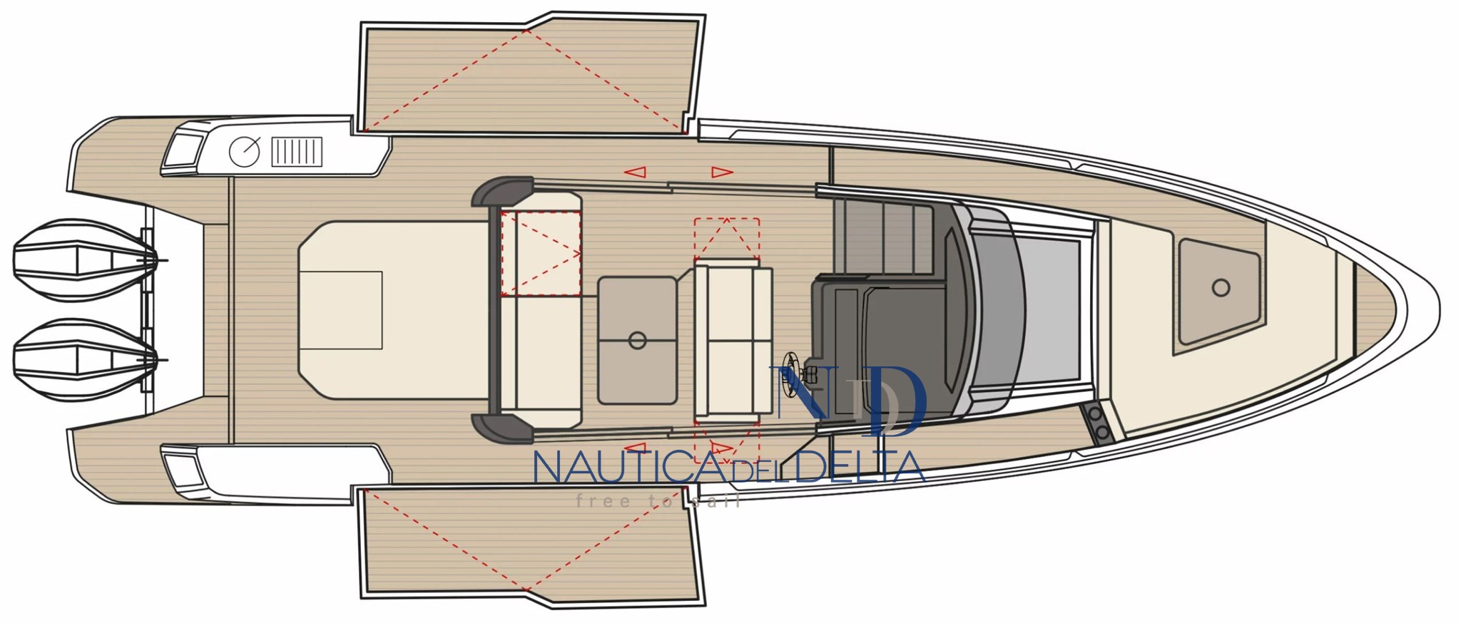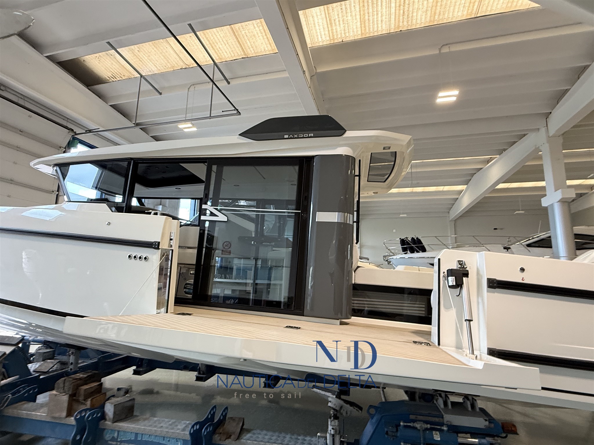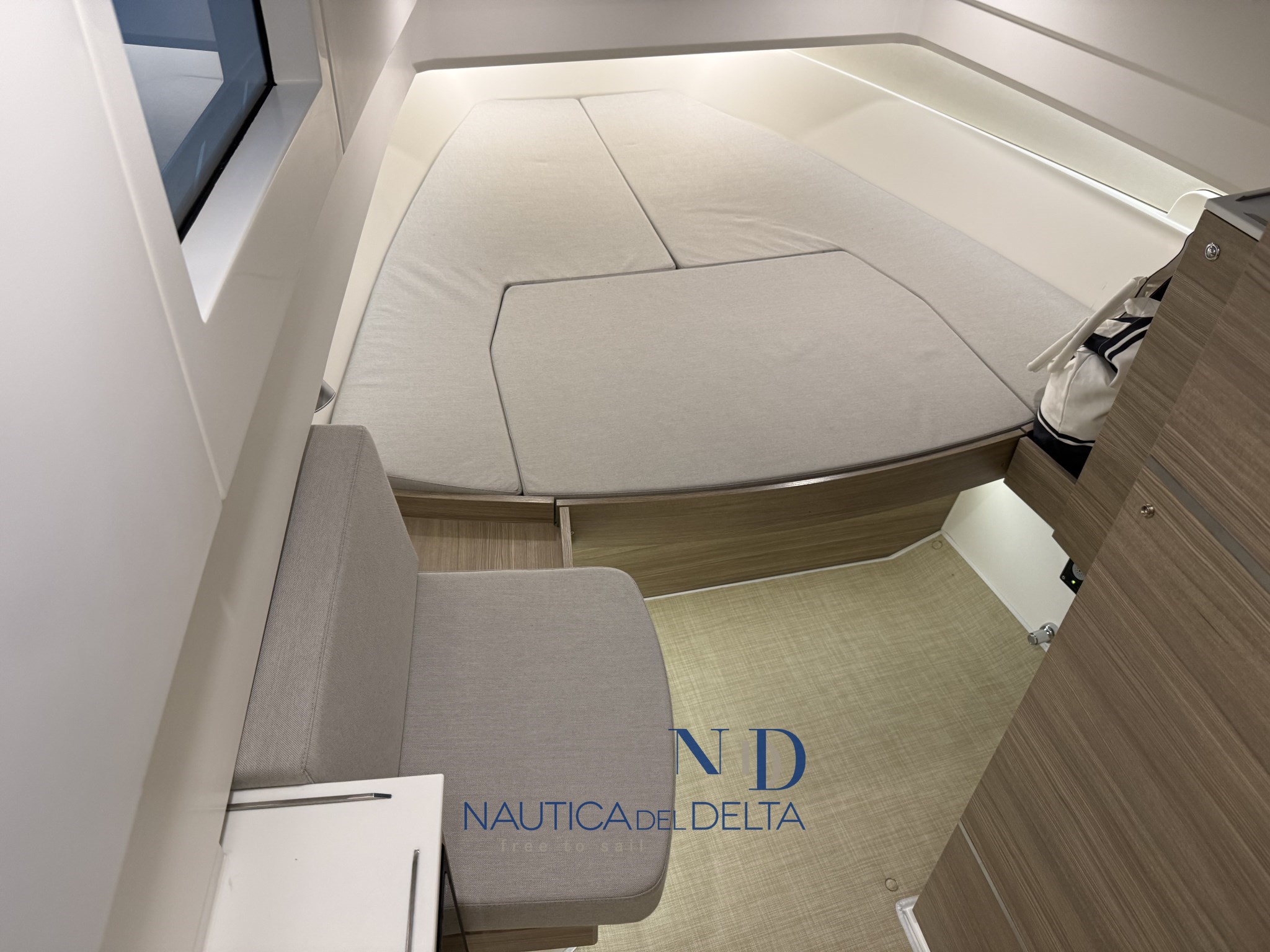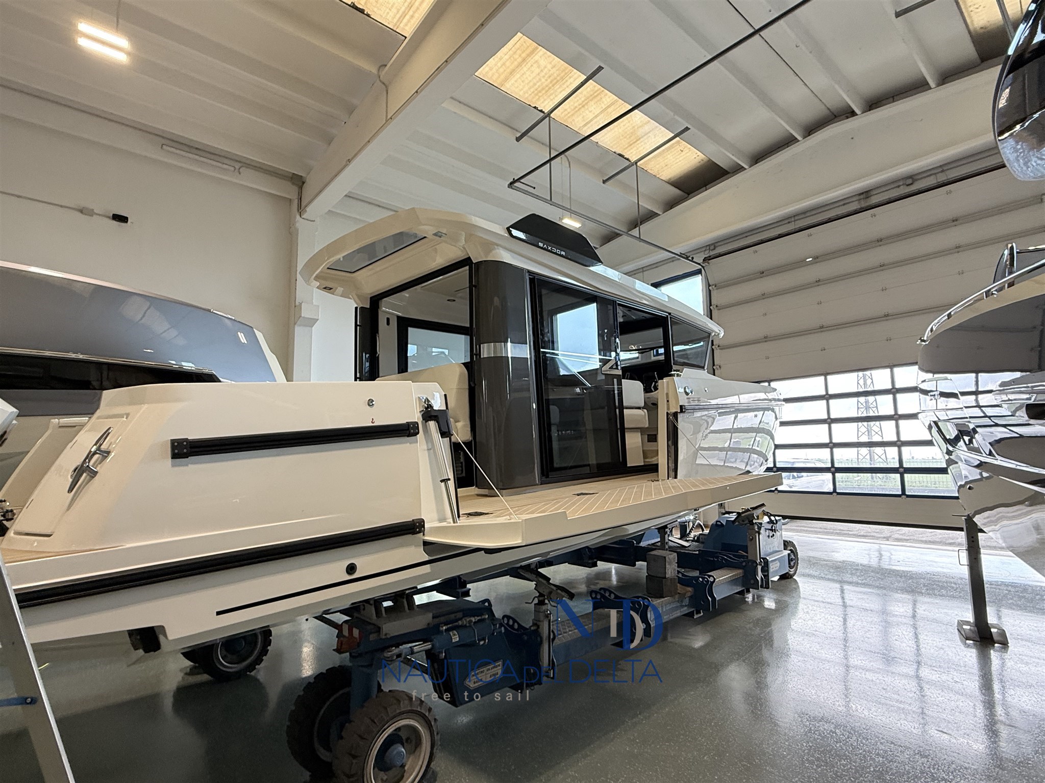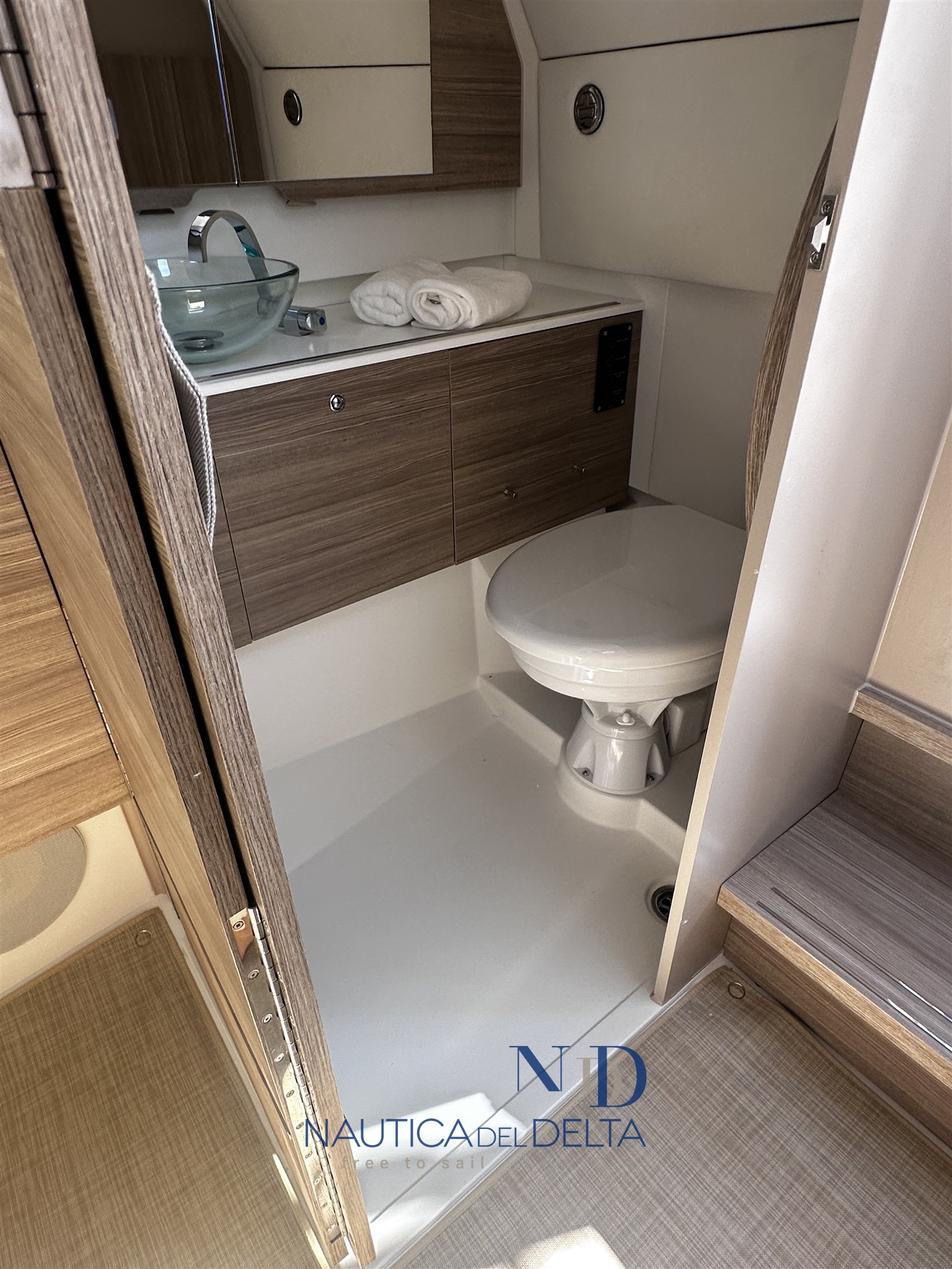 Boot voll optional konfiguriert: weiße 2x300 Mercury-Motoren, Klimaanlage mit Wechselrichter und Lithiumbatterien, Flexiteek, Bugstrahlruder, elektrisches Schiebedach, Achterkabinenbeschlag, automatische Zipwake-Klappen, Achtergrill, Kühlschrank, Navigationspaket, Hecktore.