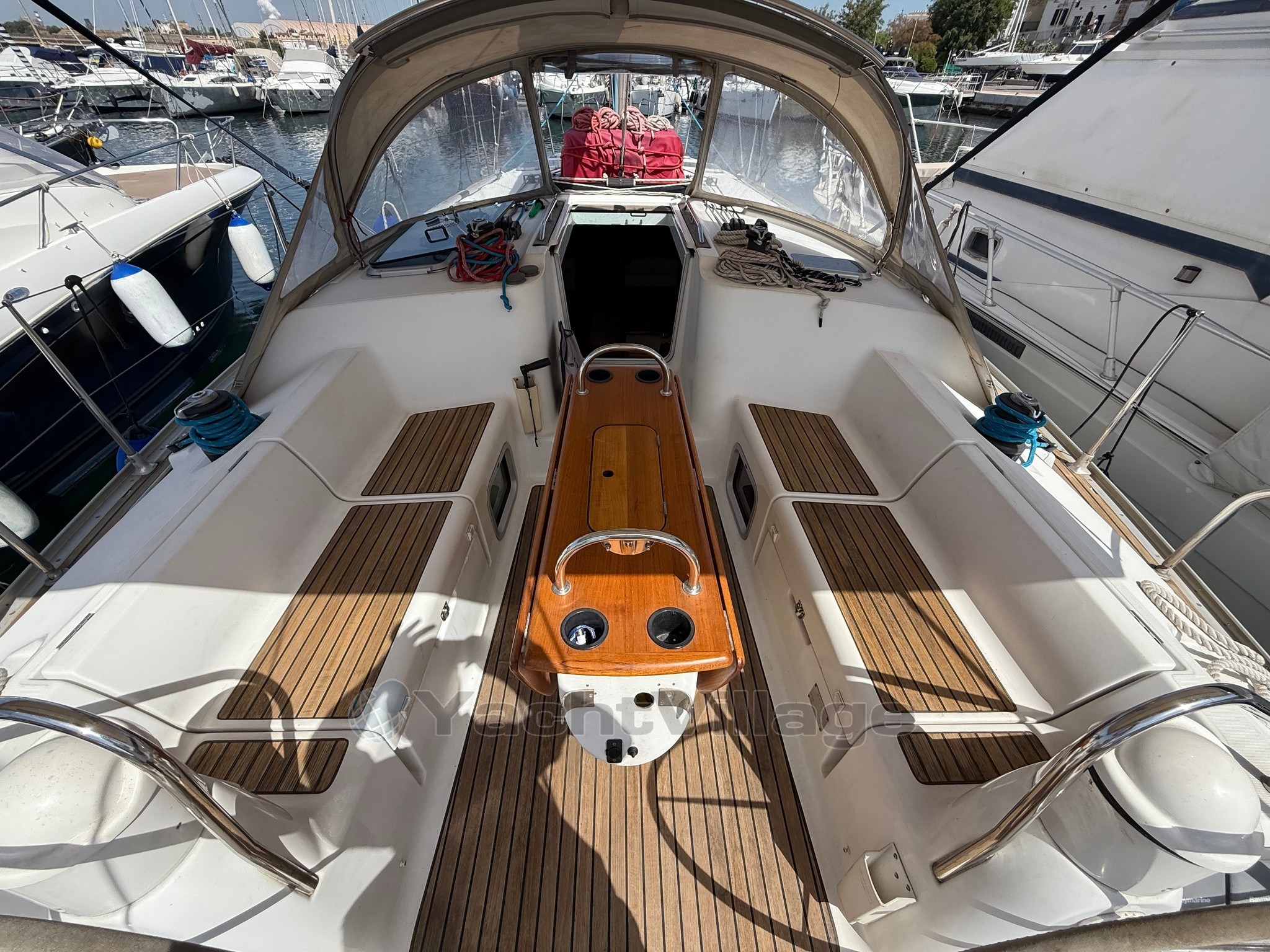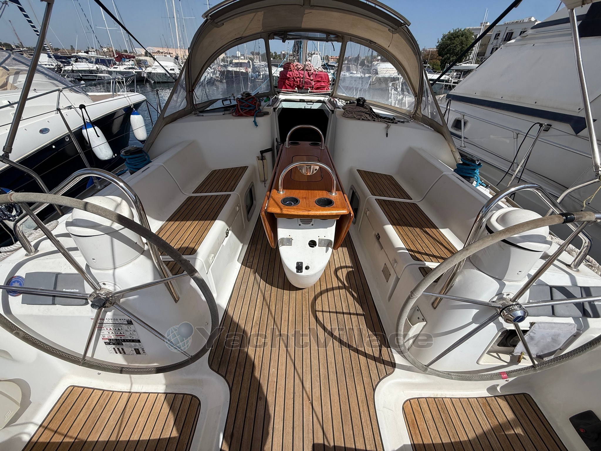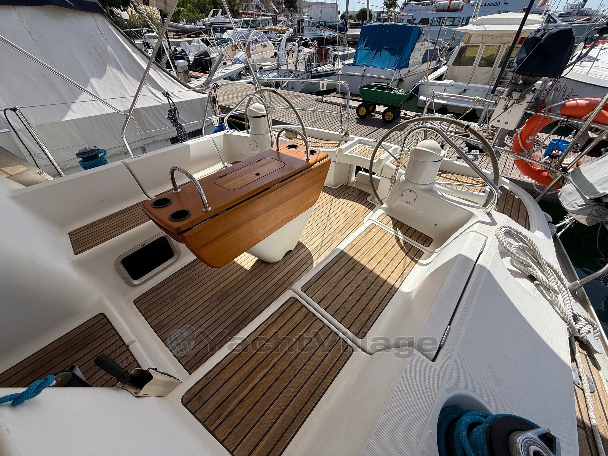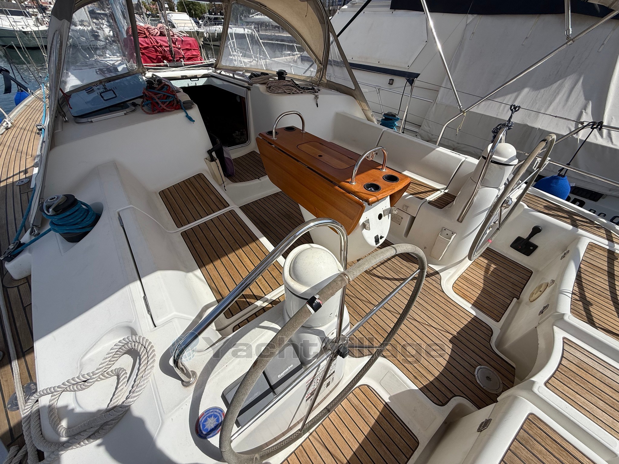An Deck befindet sich das geräumige Cockpit, das durch das Doppelsteuerhaus gegeben ist.