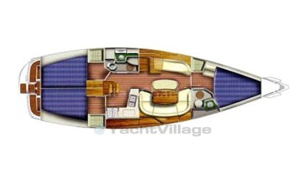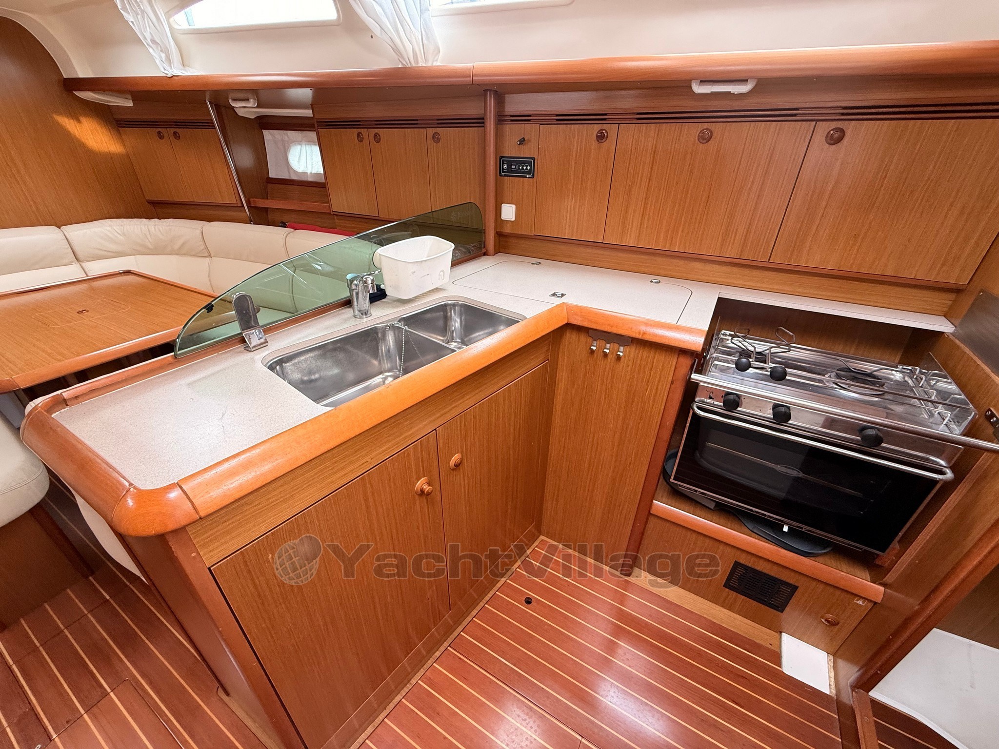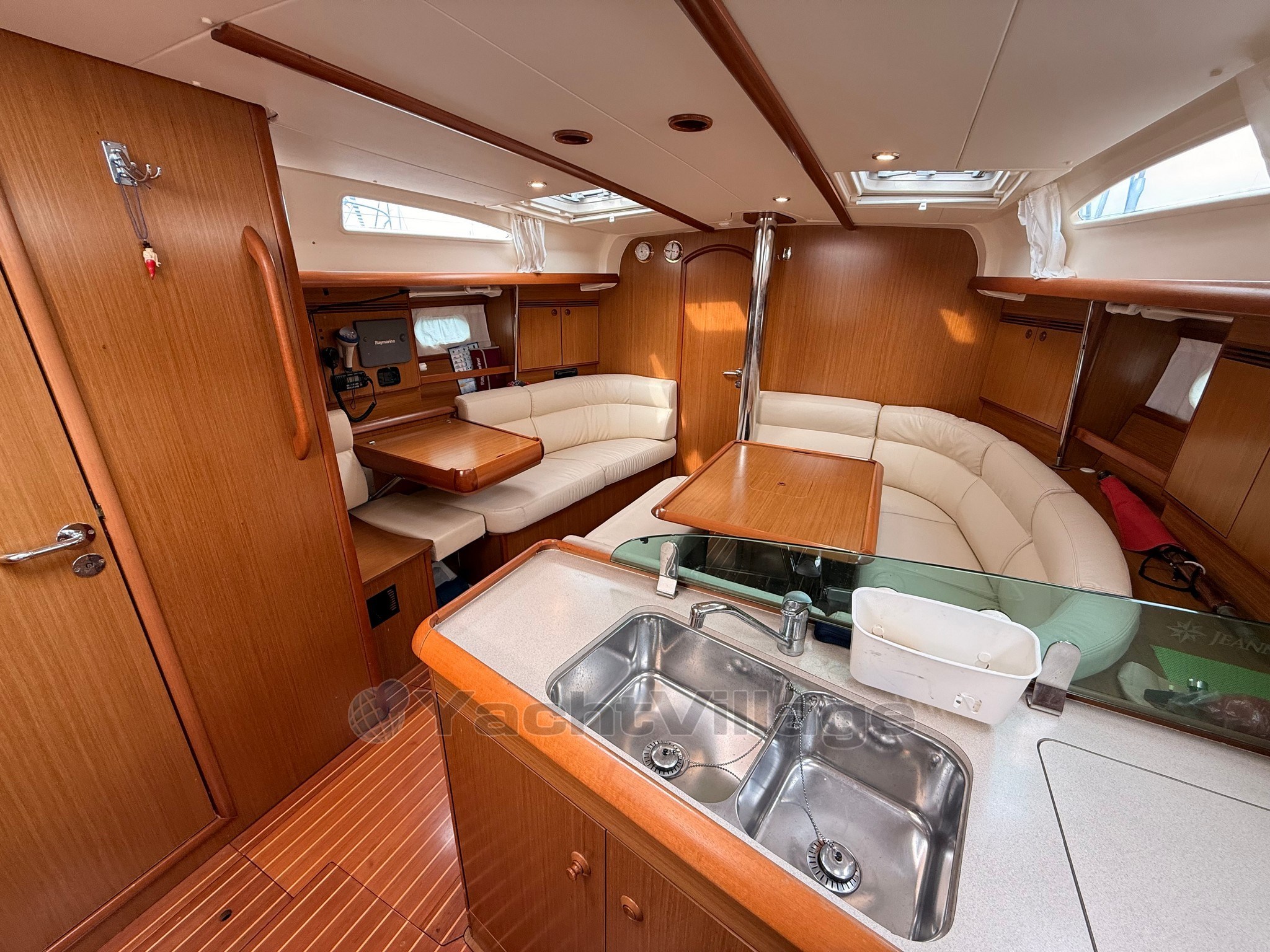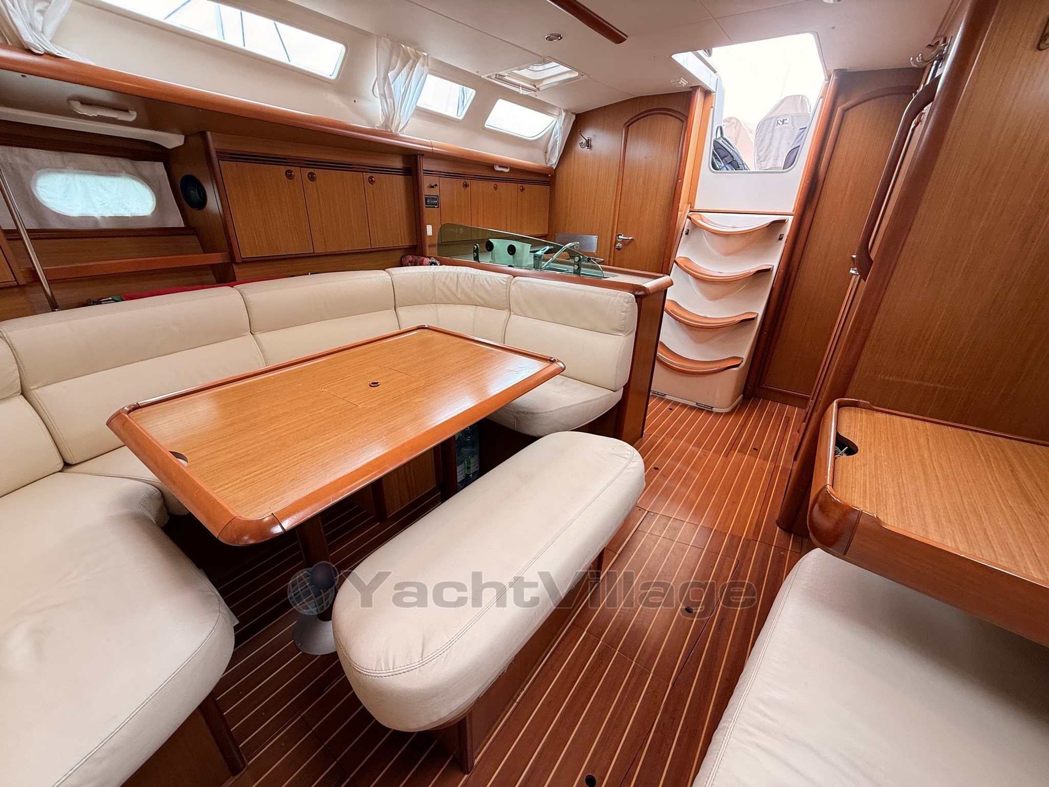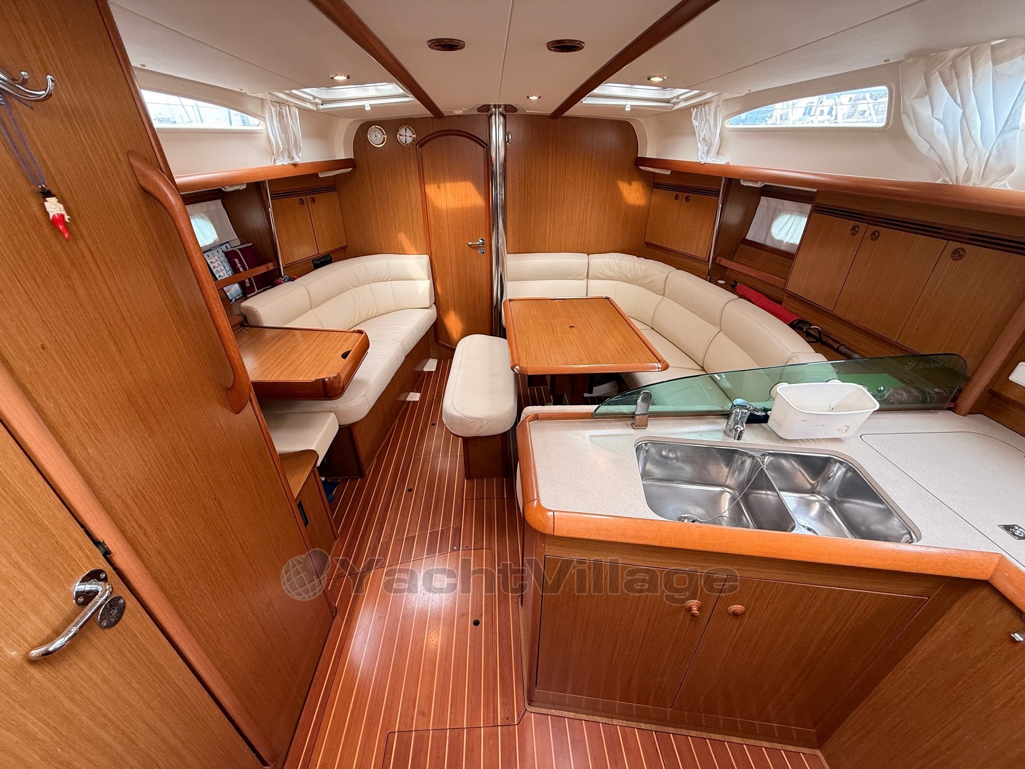 Warmes und helles Interieur mit 3 Kabinen und 2 Bädern, großer zentraler Essecke und voll ausgestatteter Küche.
