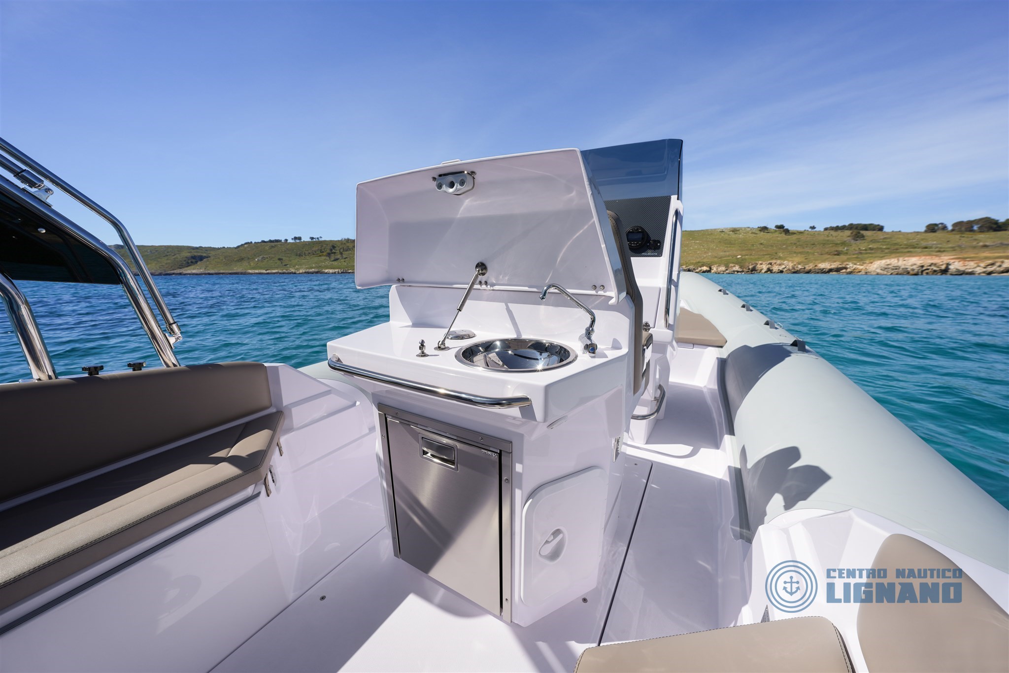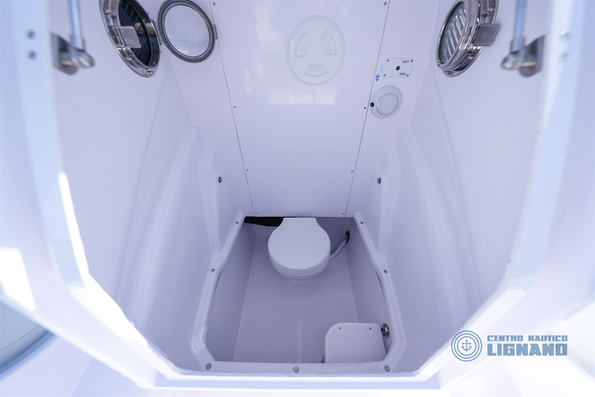 Neue Italboats Predator 700 inklusive Honda Marine BF250 V6 Motor inklusive: übergroße Heckplattformen, elektrische Winde mit Edelstahlanker und -kette, 12V Edelstahlkühlschrank, Duschsystem mit ausziehbarem Mobilteil, chemische Toilette, Edelstahlmarkise, Doppelbatteriesystem, Honda Marine BF250 V6 Außenborder, Veratron 4,3" Computer, original Edelstahlpropeller, Garmin Echomap UHD2 72HP GPS-System, Adriatische Karte, Heckgeber.