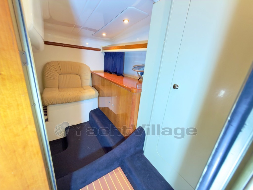 Der Cranchi Zaffiro 34 ist ein italienischer Vollblutklassiker, er ist seit langem ein Erfolg für Cranchi. Er bietet überraschend große Innenräume, die für seine Kategorie gut aufgeteilt sind. Die äußeren Teile: Unvergleichlich. Das externe Cockpit ist erstaunlich: Es enthält mit ungewöhnlicher Eleganz und einer logischen Reihenfolge der Effizienz alles, was Sie für Komfort, Entspannung und Wellness benötigen. Das Innenleben: Sie sind überraschend modern, geräumig und gut verteilt für ihre Kategorie. Das Wohnzimmer ist gut belüftet und hell, mit separaten Räumen; Für mehr Privatsphäre sind die Kabinen beide mit einer eigenen Zugangstür geschlossen. Der Motor: Es ist die maximale Leistung, die bei diesem Modell installiert ist. Das Bestmögliche in Bezug auf Zuverlässigkeit und das Aktuellste: Er ist mit zwei 260 PS starken Volvo Penta D4 MIT MODERNEN DPH-DOPPELPROPELLER-Z-ANTRIEBEN AUSGESTATTET.