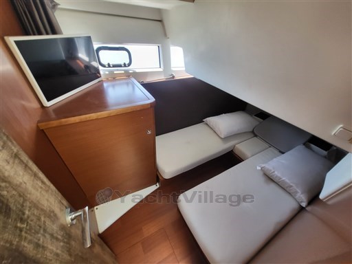 Seine zeitgenössische Eleganz wird mit absoluter Transparenz und großer Leichtigkeit der Zirkulation kombiniert. Die Inneneinrichtung ist modular, nüchtern und komfortabel: Kabinen, großes Badezimmer, Wohnzimmer, Kleiderschränke... Das Getriebe mit Stern-Antrieb und die einstellbare Leistung zeugen von einem verantwortungsvollen Ansatz. Ein raffiniertes Produkt, das von Kennern geschätzt wird. Die Panoramasicht und die vollständige Steuerkonsole machen das Segeln entlang der Küste einfach und reibungslos. Dank der Helligkeit und der großen Räume fühlen Sie sich den Elementen näher.