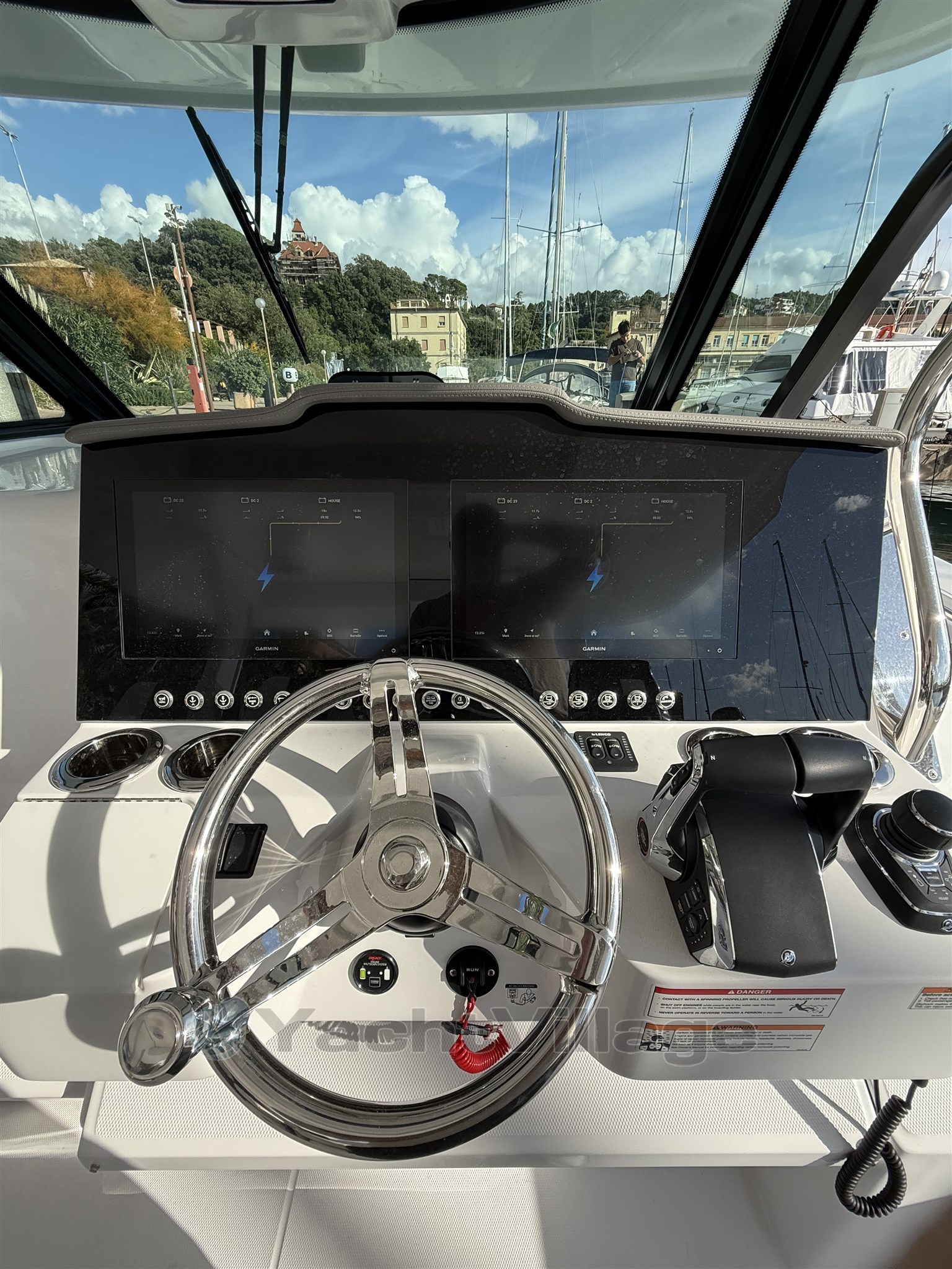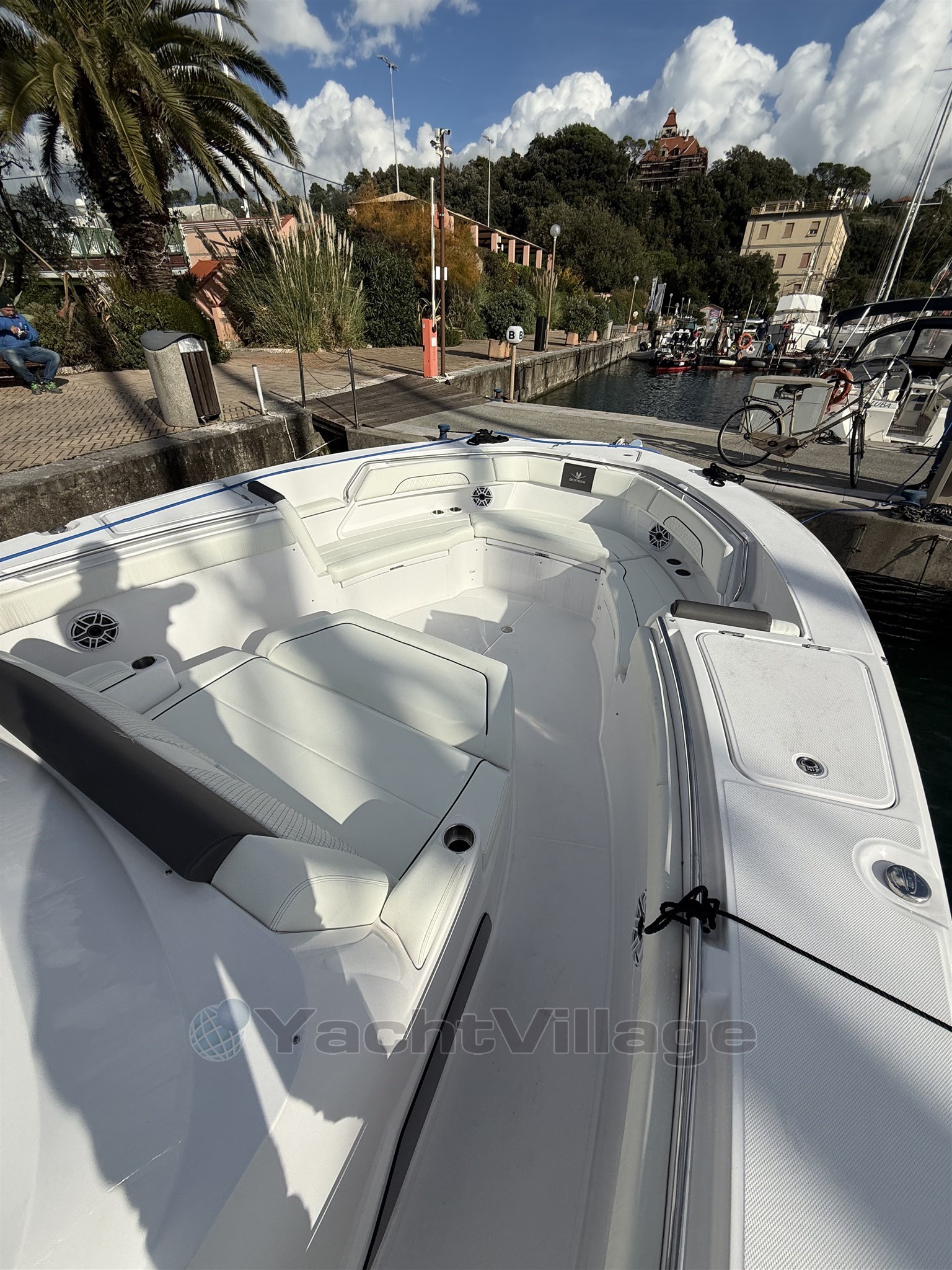 Boot ausgestattet mit 3 x Mercury 400 PS JPO, Vesselview 7", 9,6 kW Generator, Seakeeper 3, JL Audio Preium-System, Angelausrüstung wie 170 l Live-Tank und Ködervorbereitungsschrank, Garmin-Elektronik, Unterwasserbeleuchtung, Polster und kompletten Abdeckungen.