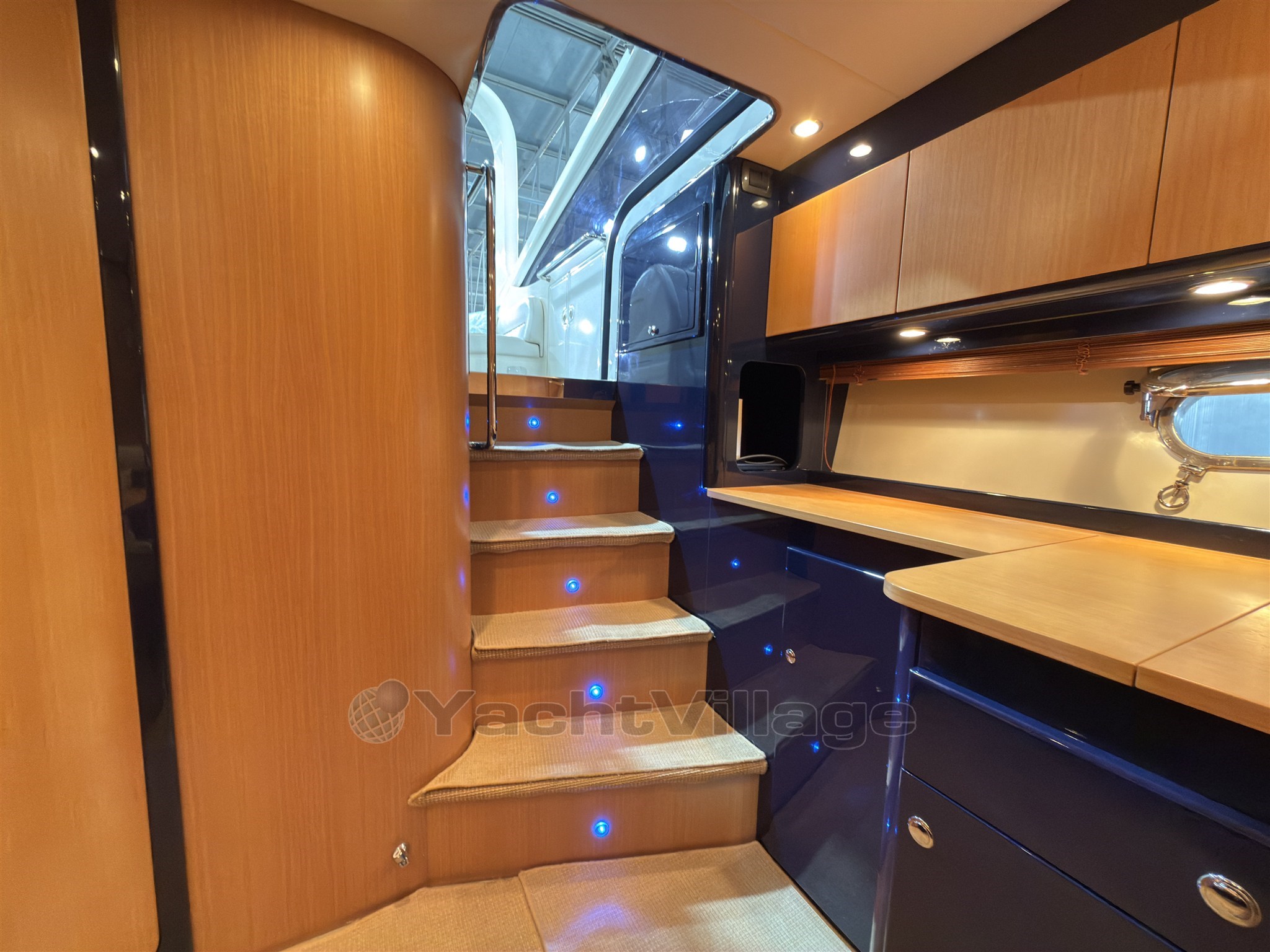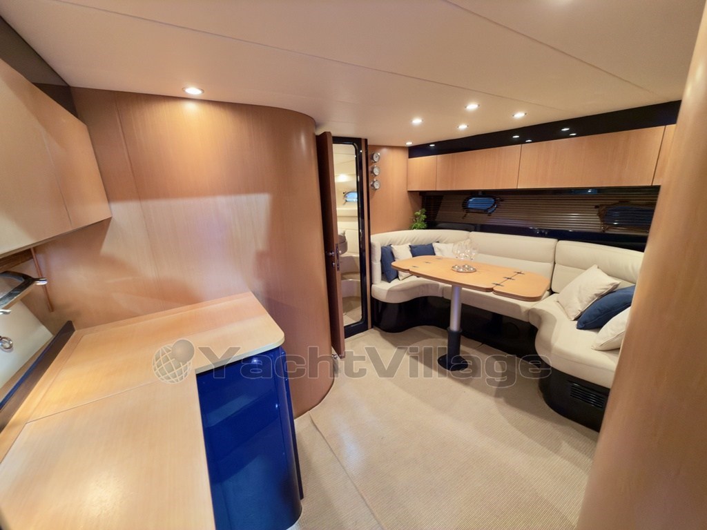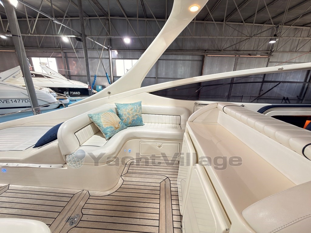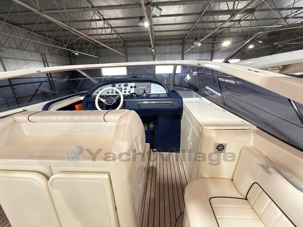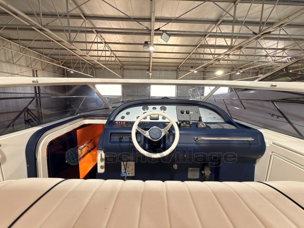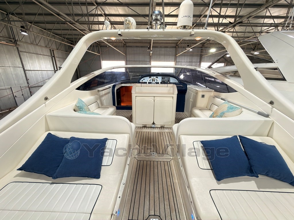 Das Cockpit zeichnet sich durch einen zentralen Kontrollstand, L-förmige Sofas, ein Sonnendeck mit zentralem Durchgang und einen einziehbaren Tisch aus.