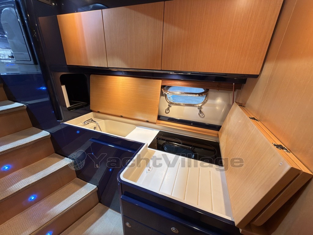 Die Innenräume, hell und luftig, bieten eine Eignerkabine im Bug mit separatem Bad, einen Salon mit Küche und eine besonders große und komfortable Gästekabine, da sie mittschiffs liegt.