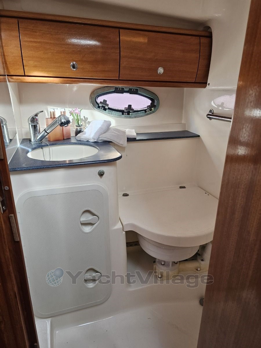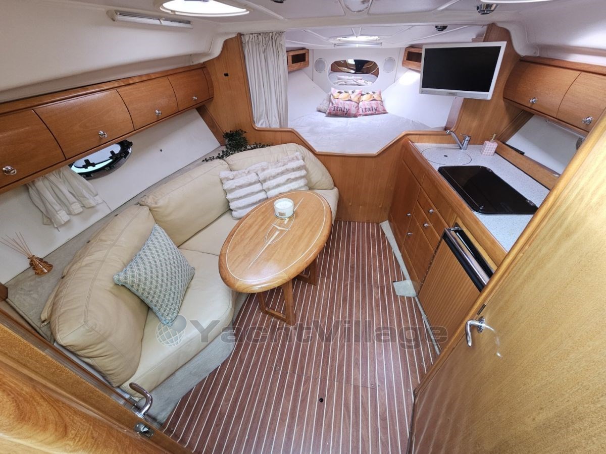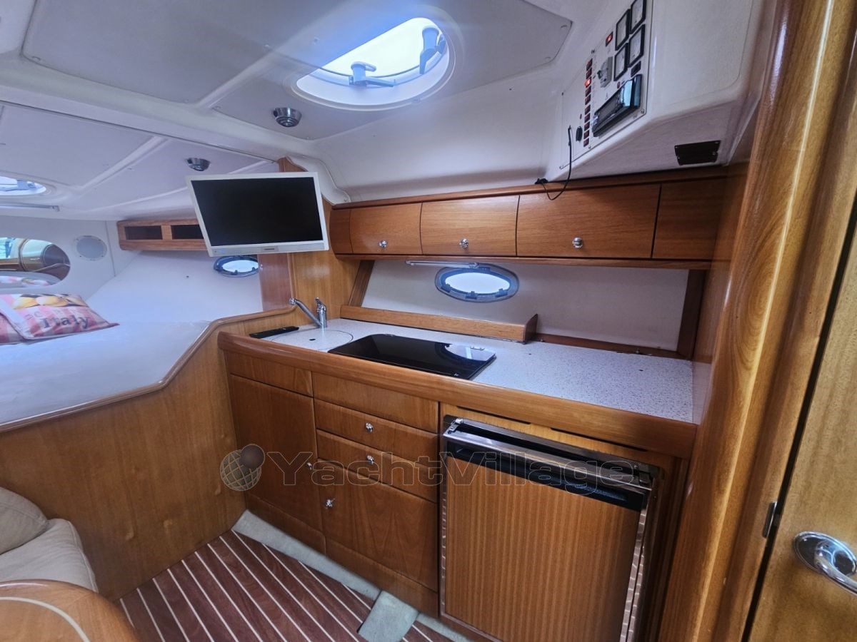 Die Bavaria 32 Sport bietet Platz für 4 Personen und verfügt über eine voll ausgestattete Küche mit Herd, Kühlschrank und Fernseher.