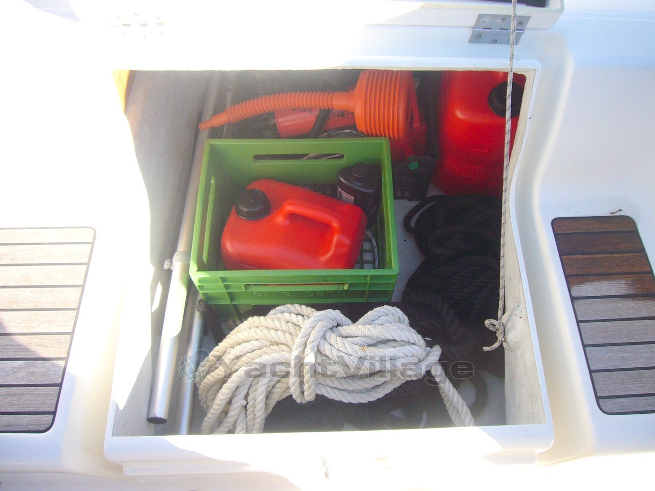 2 blaue Ruderradabdeckungen; Tisch im Freien mit Eisfach; Stereoanlage mit externen Lautsprechern und Cockpit; Ruder und Anker der Achtung ; Motor wird jedes Jahr gewartet ; Doppelwaschbecken mit Seewasser-Fußpumpe;