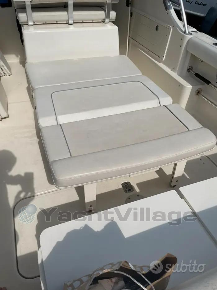 Pursuit 2670 from 2005 with two 225 hp Yamaha with cabin with double bed and retractable toilet. Rod holder . Live tank and fish. 4 reel attachments. GPS Raymarine c120, pilot raymarine, Vhf . TTop . New external cushions still to be assembled. Minn Kota Electric Fishing Plant New