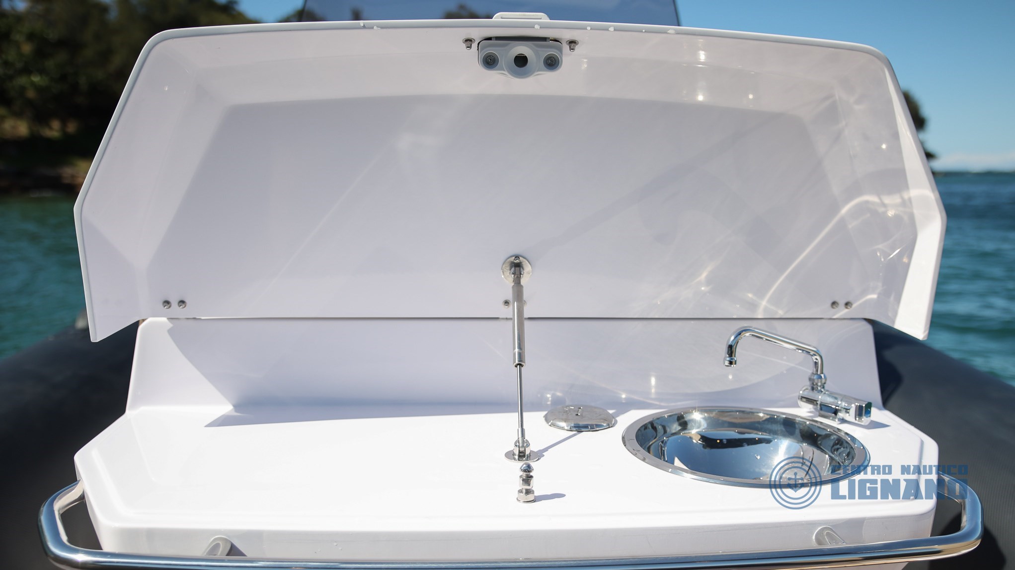 ALL INCLUDED in the price: fiberglass rollbar with complete awning, stainless steel refrigerator built into the console, complete EVA flooring in the color of your choice, LED courtesy lights, tubular in two-tone version colors of your choice, cushions color of your choice, mooring cover, console cover, driver's seat cover, 230V electrical system complete with 12V battery charger, shore cable, board and 2 sockets, 2 battery system, Honda Marine BF350 V8 white engine guoribordo, church control, original computer, original propeller, Garmin system with 7" fast touchscreen map screen and HD echo sounder transducer, complete map, special hydraulic steering for BF350, double battery with 3-way diverter.
