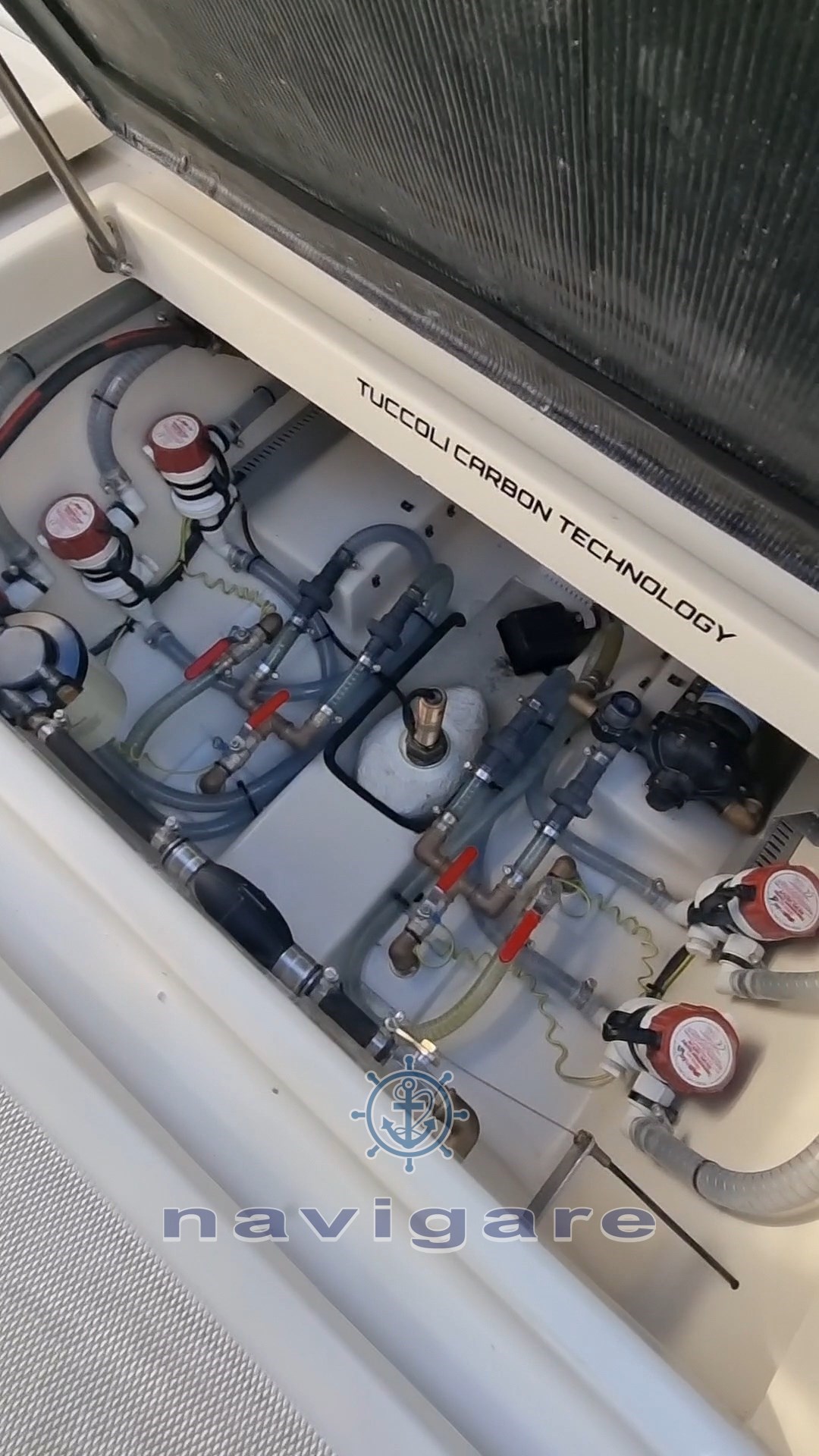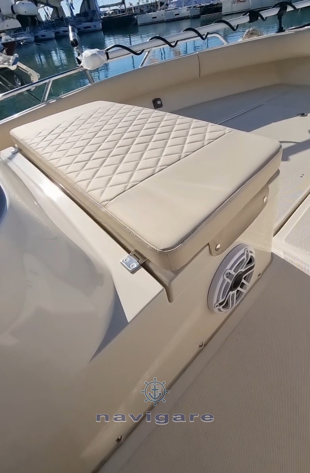 A central console with deck, accessories and water lines that have been designed with the advice of the 33-time world fishing champion Marco Volpi,