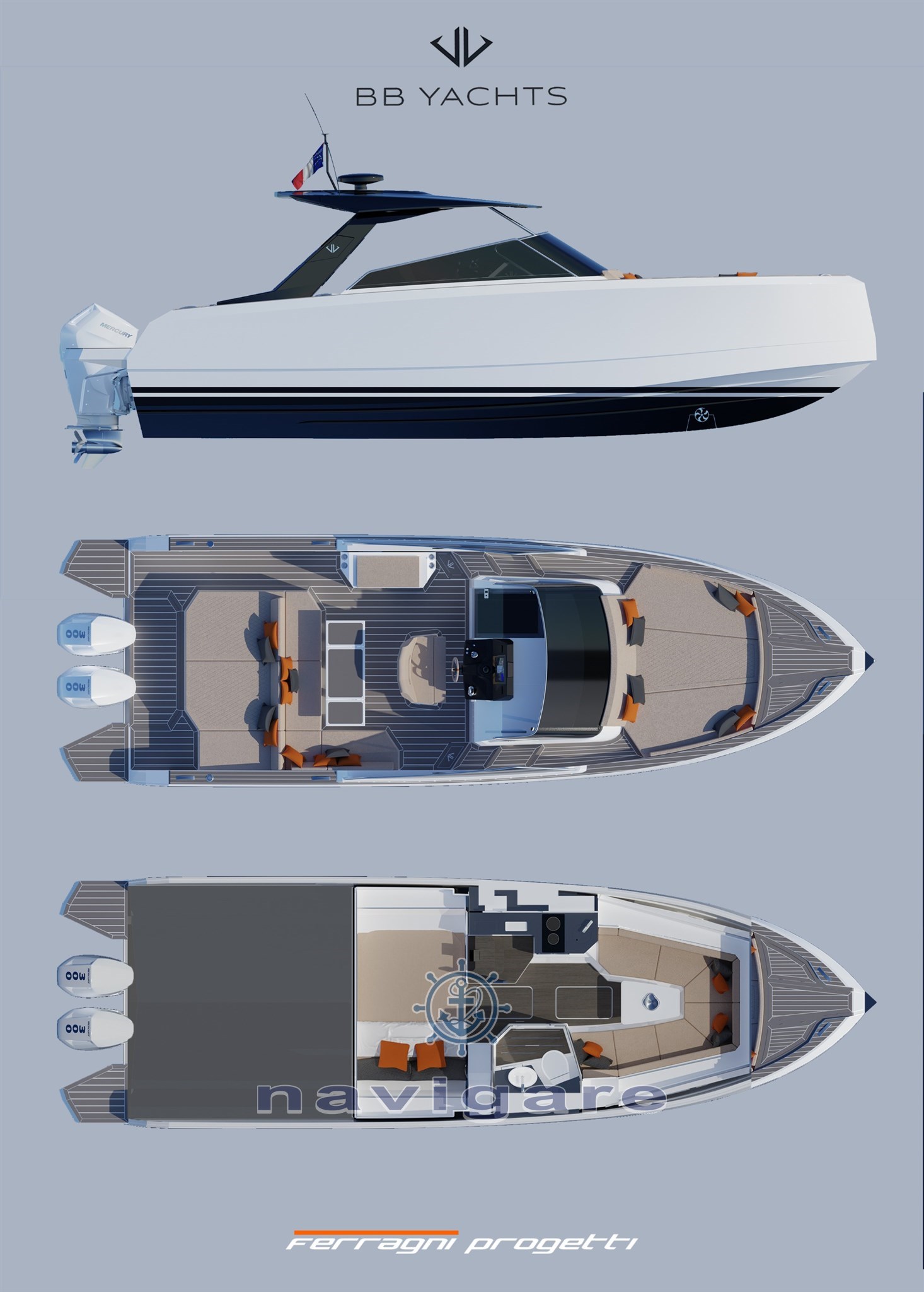 The shipyard is new, one foot in France, where it is based, and one in Italy, where the boats are built. In particular, the larger ones will be built in Viareggio. On the French Riviera I had the opportunity to test the 44' Ischia, which is the first model, but they are already making a 33' and in the coming months it will be the turn of the 66'.