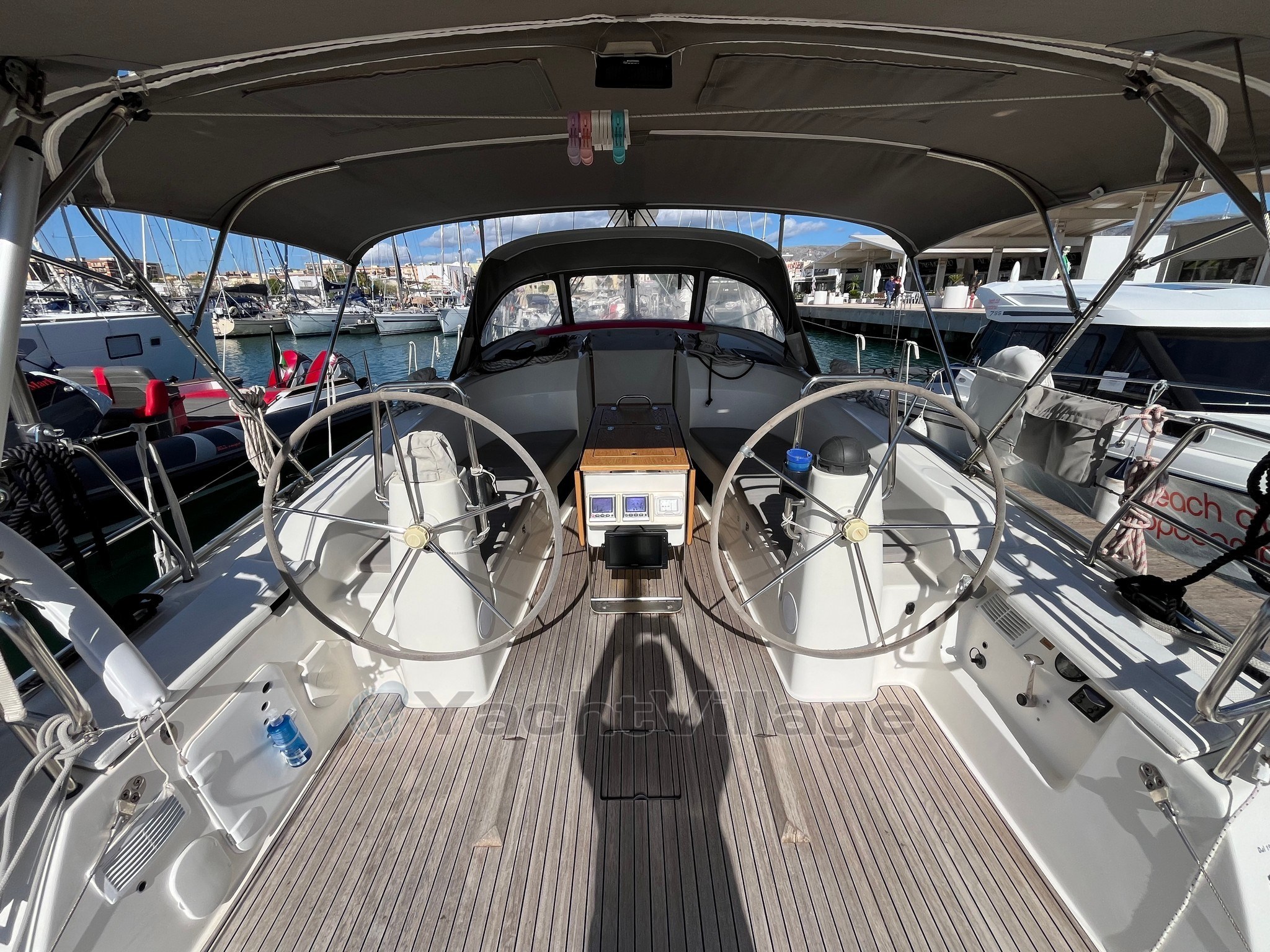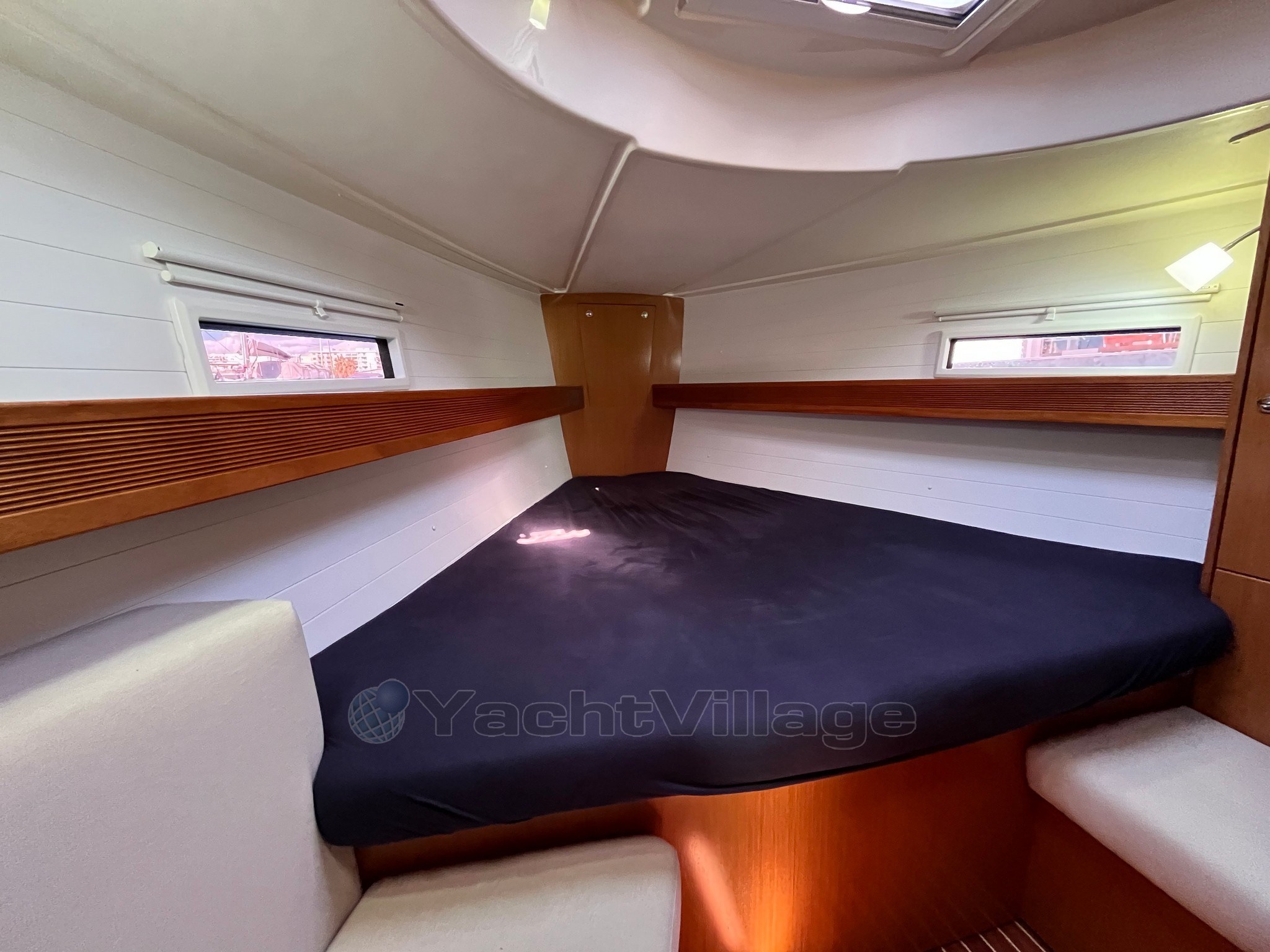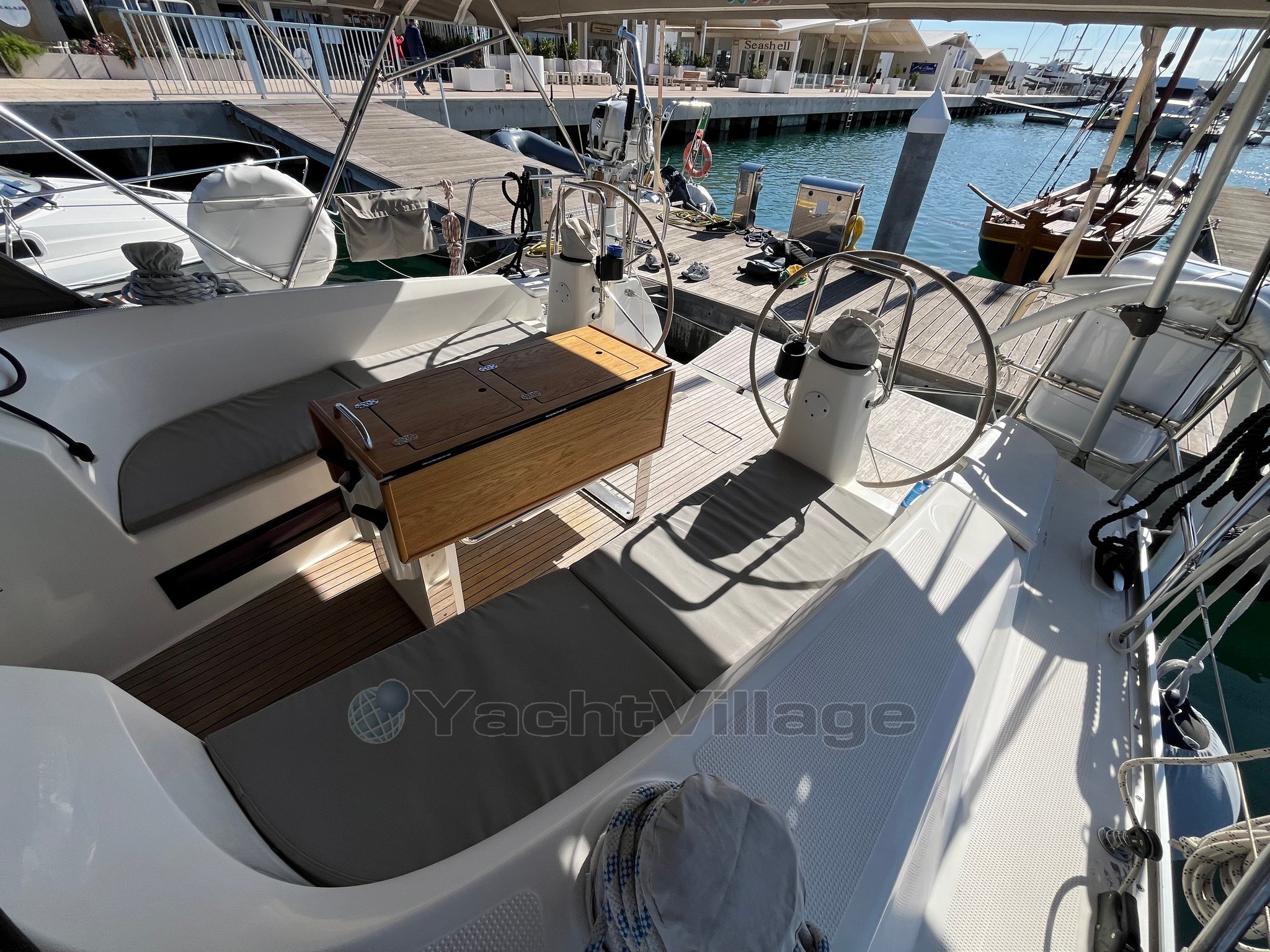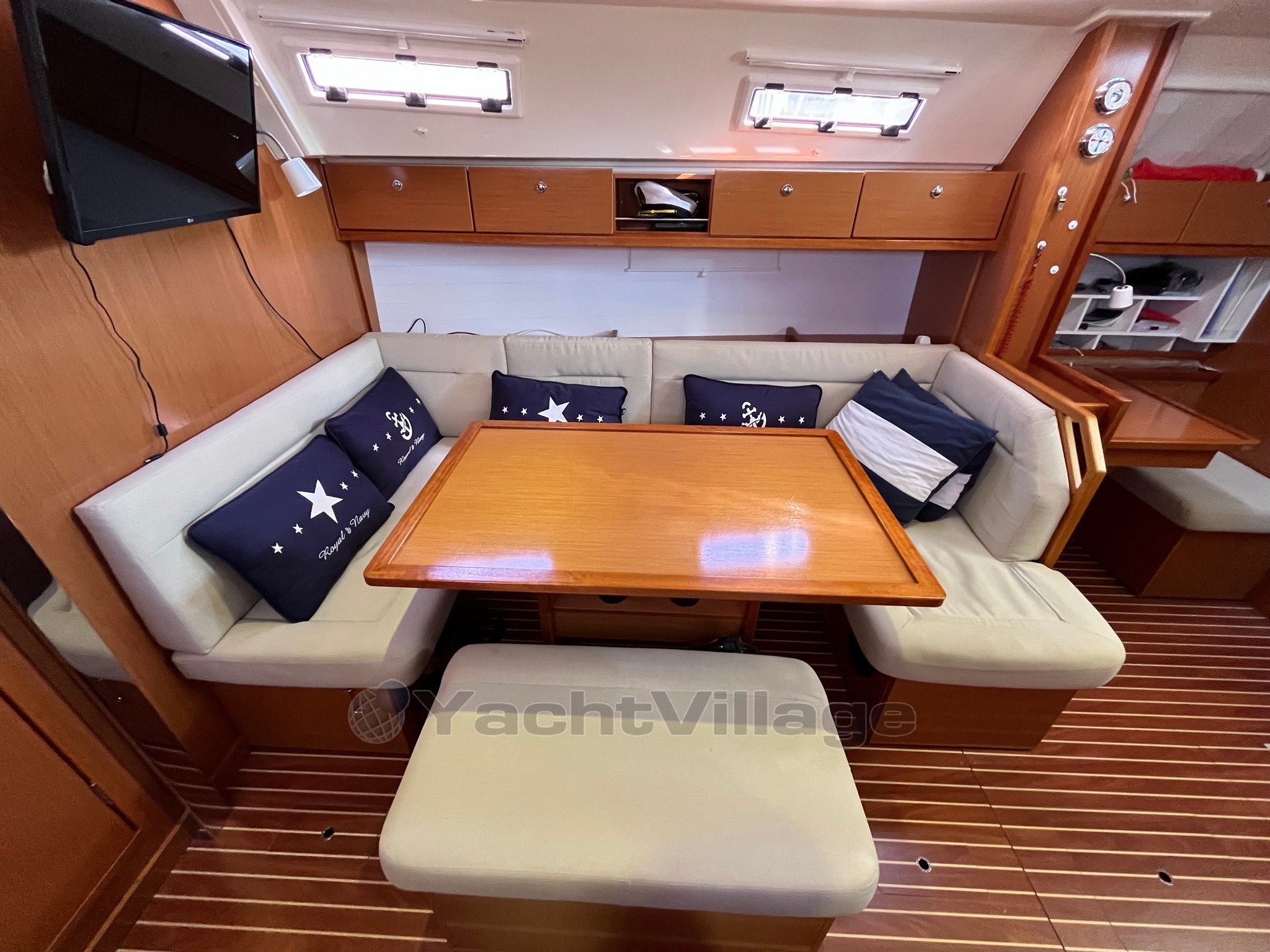 On deck, the large and well-organized cockpit, with double wheelhouse, central table and folding aft platform, guarantees comfort and safety even with a small crew. The maneuvers deferred in the cockpit make sailing simple and pleasant.