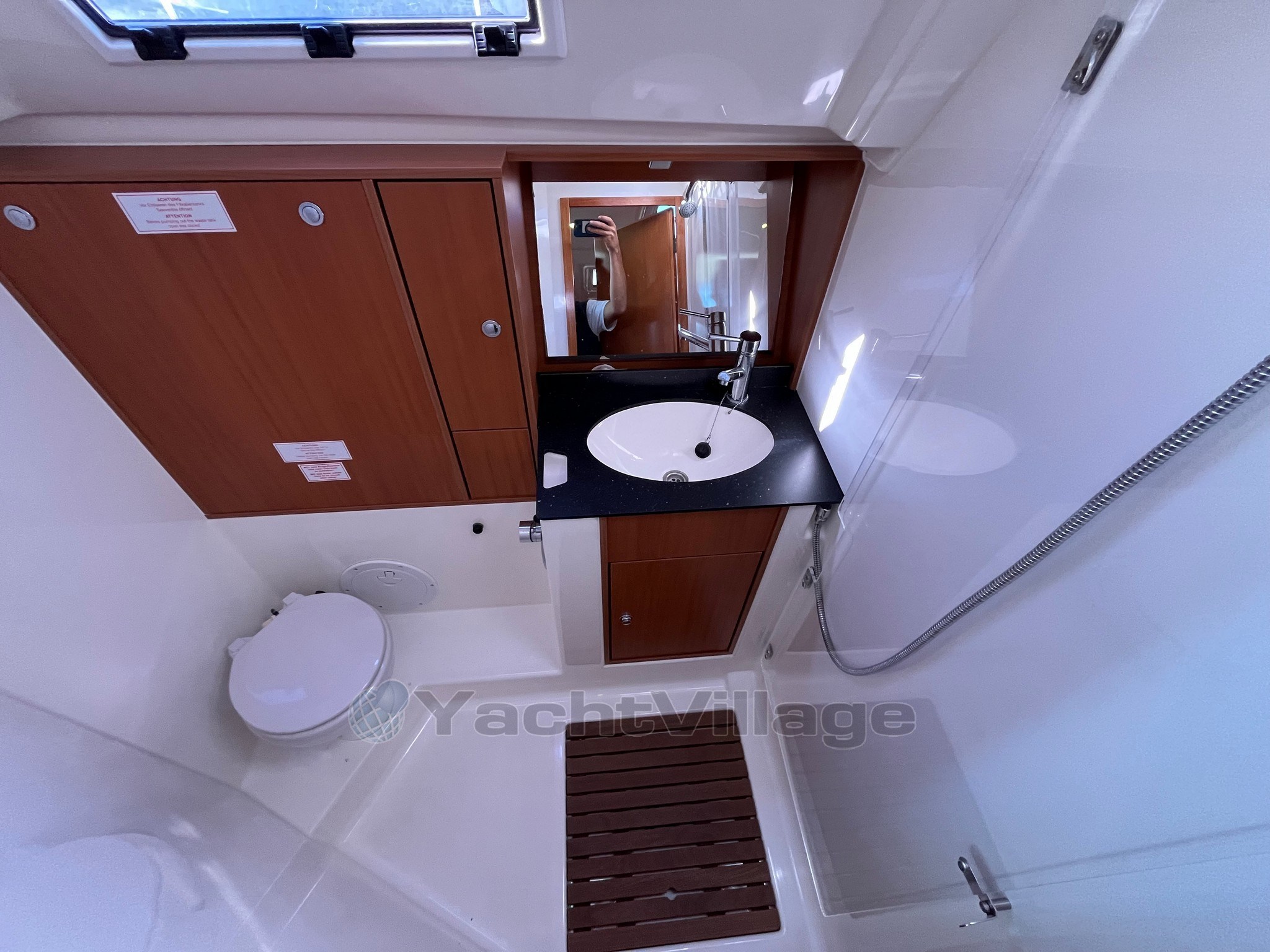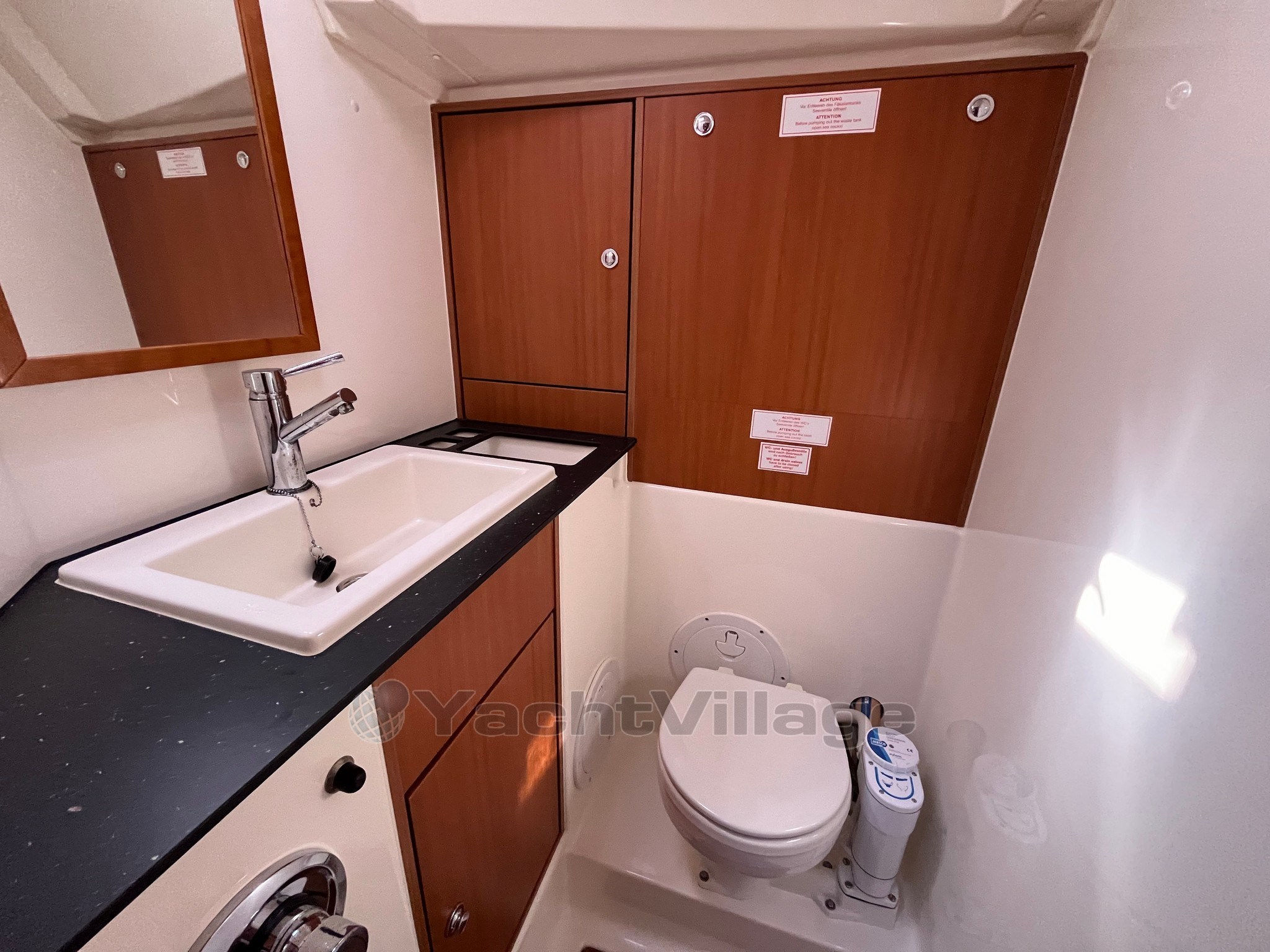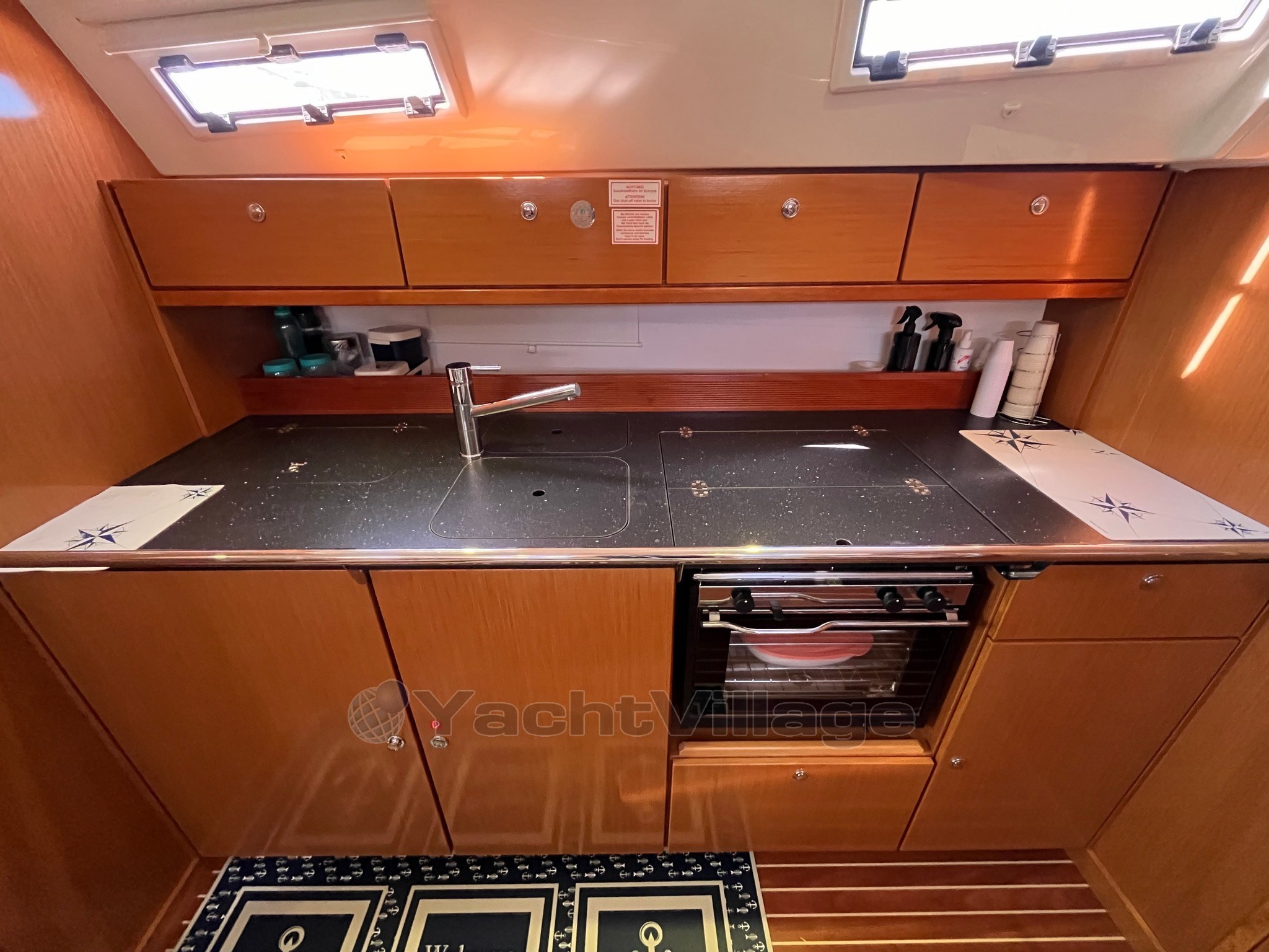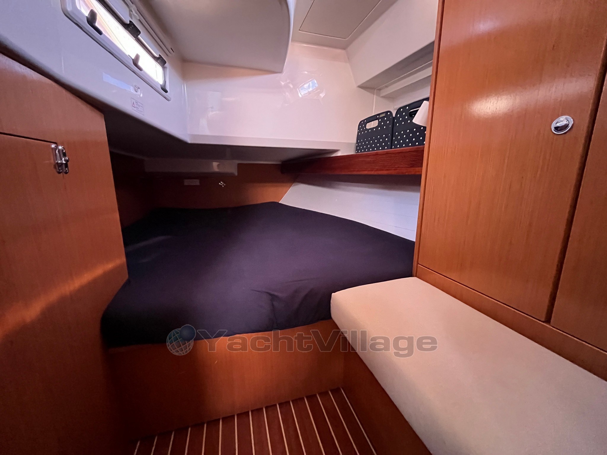 On deck, the large and well-organized cockpit, with double wheelhouse, central table and folding aft platform, guarantees comfort and safety even with a small crew. The maneuvers deferred in the cockpit make sailing simple and pleasant.