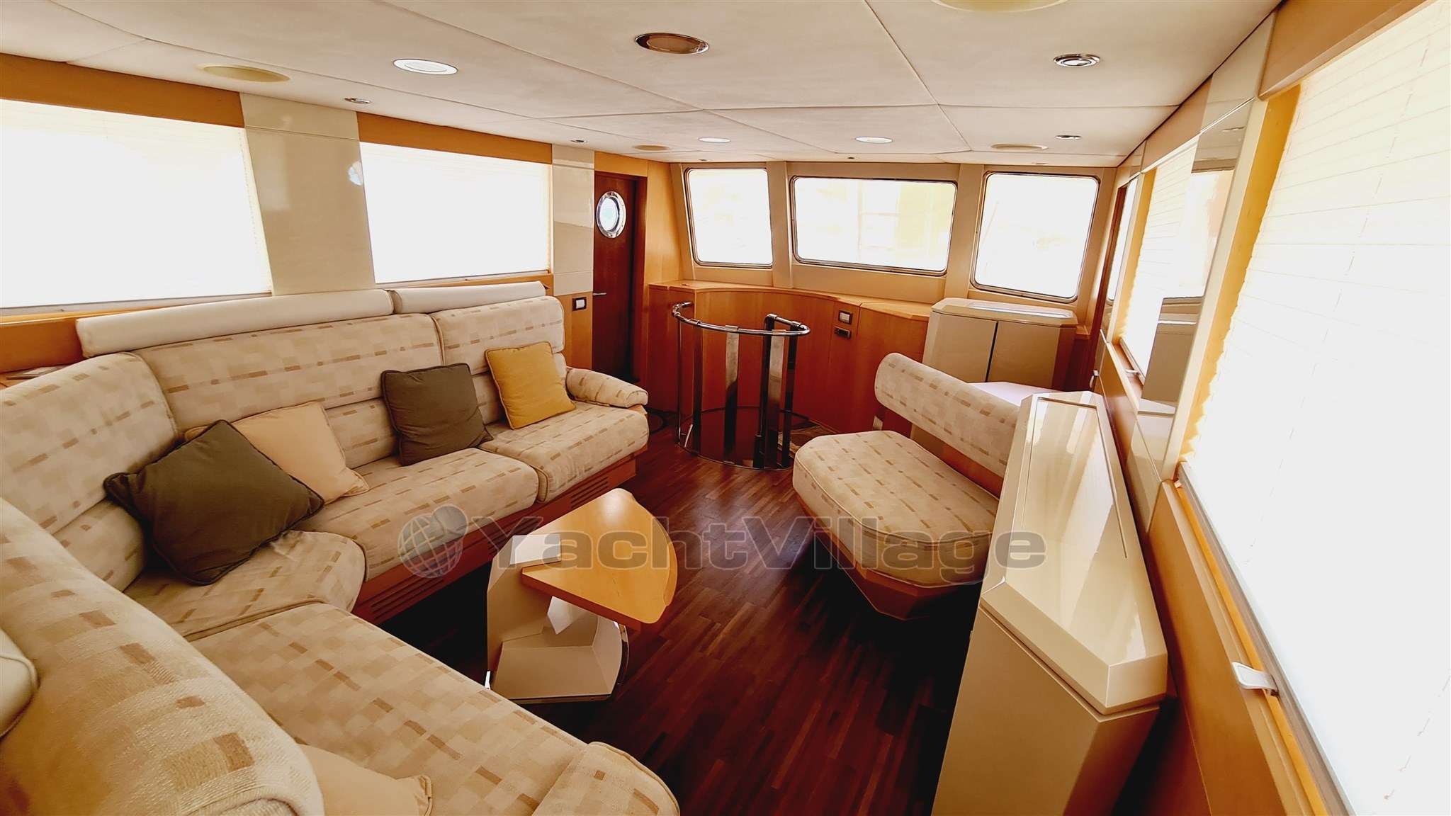 Los interiores han sido amueblados con madera de arce y lacas nacaradas color champán (paredes y mobiliario), mientras que en los suelos la cubierta principal se caracteriza por una madera wenge en fuerte contraste con la de las paredes y la cubierta inferior por alfombras color galleta. Los techos son de Alcántara.