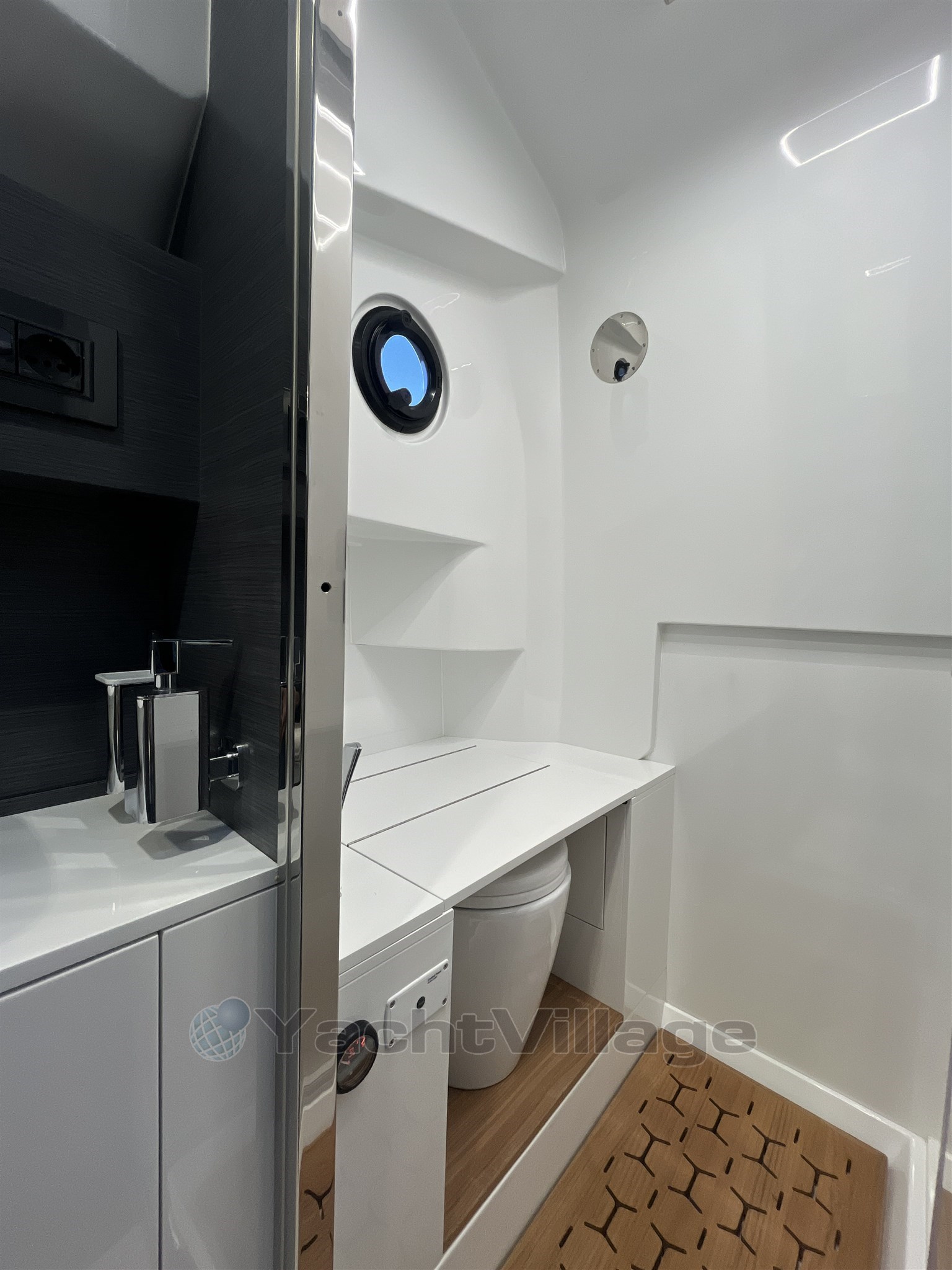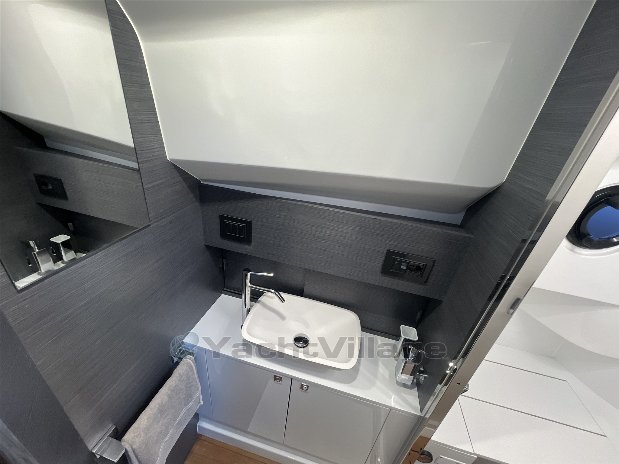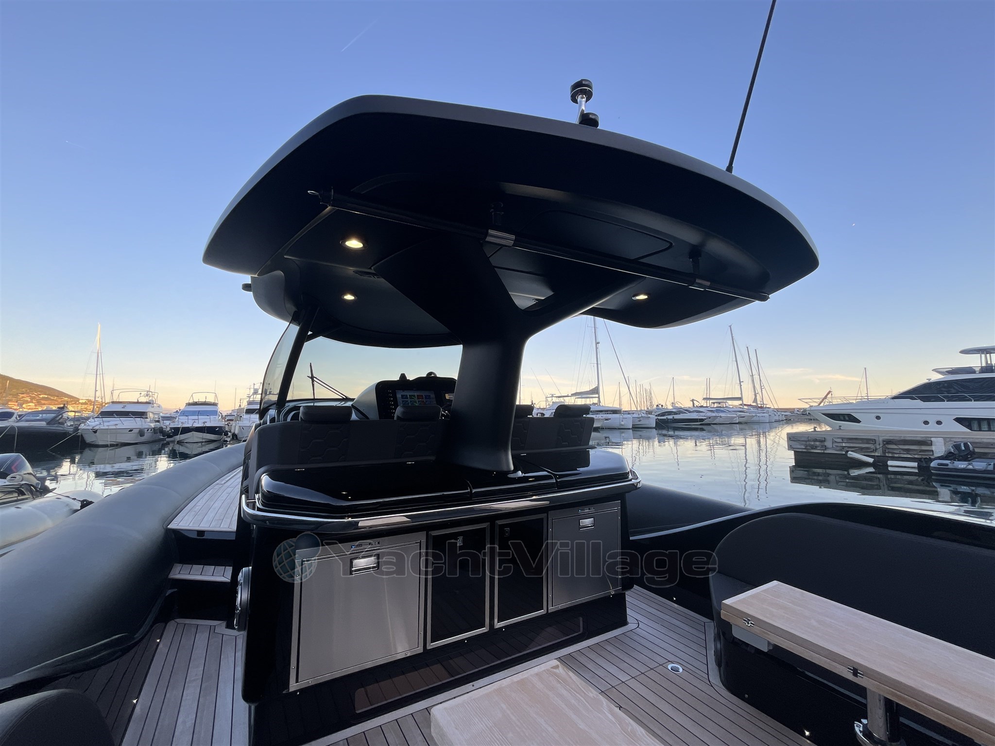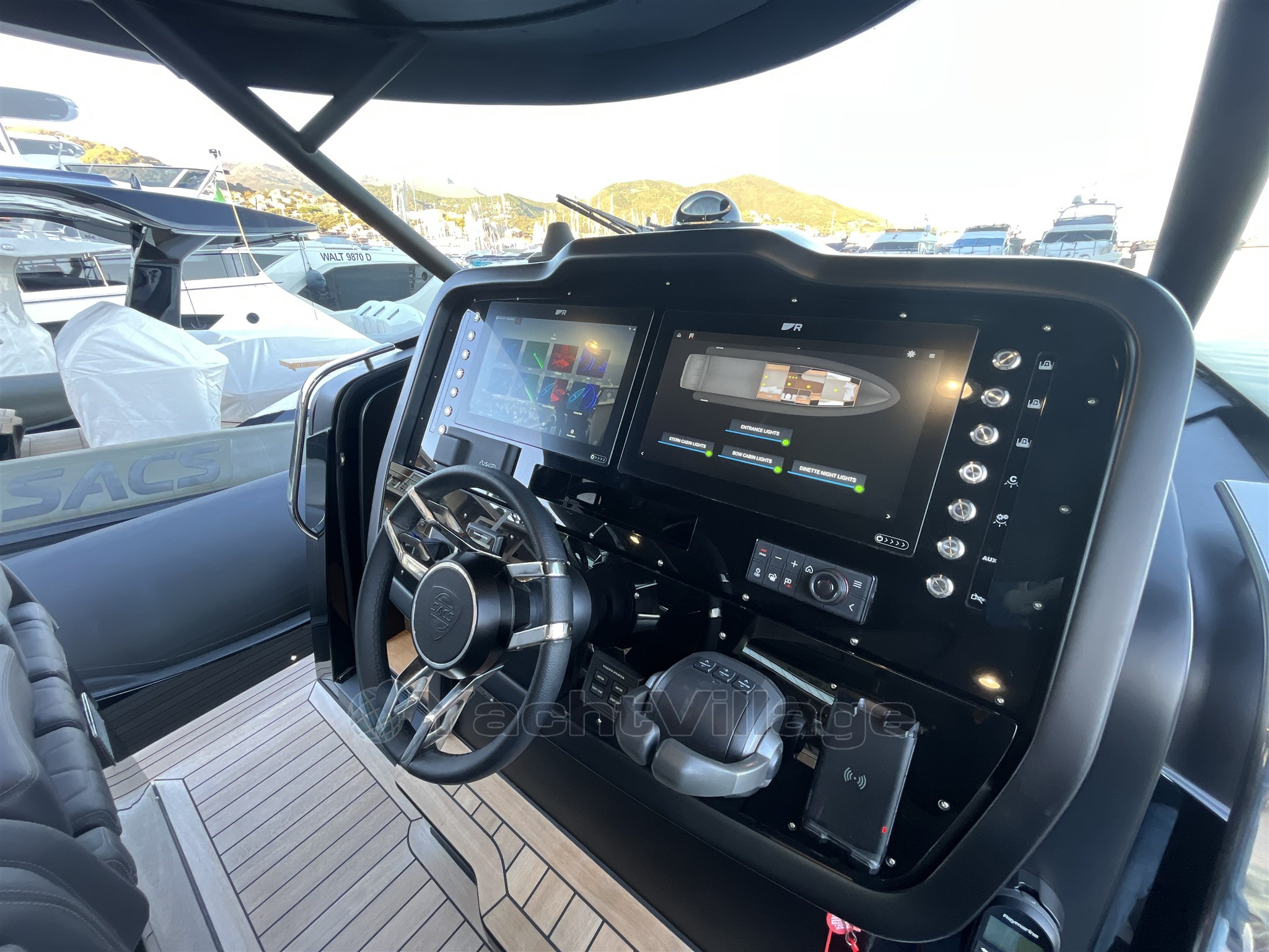 Los interiores son elegantes y funcionales, con una zona de baño separada, un camarote doble de proa y un camarote de invitados de popa también equipado con una cama doble. El diseño de Christian Grande garantiza una combinación perfecta de estilo, energía y potencia.