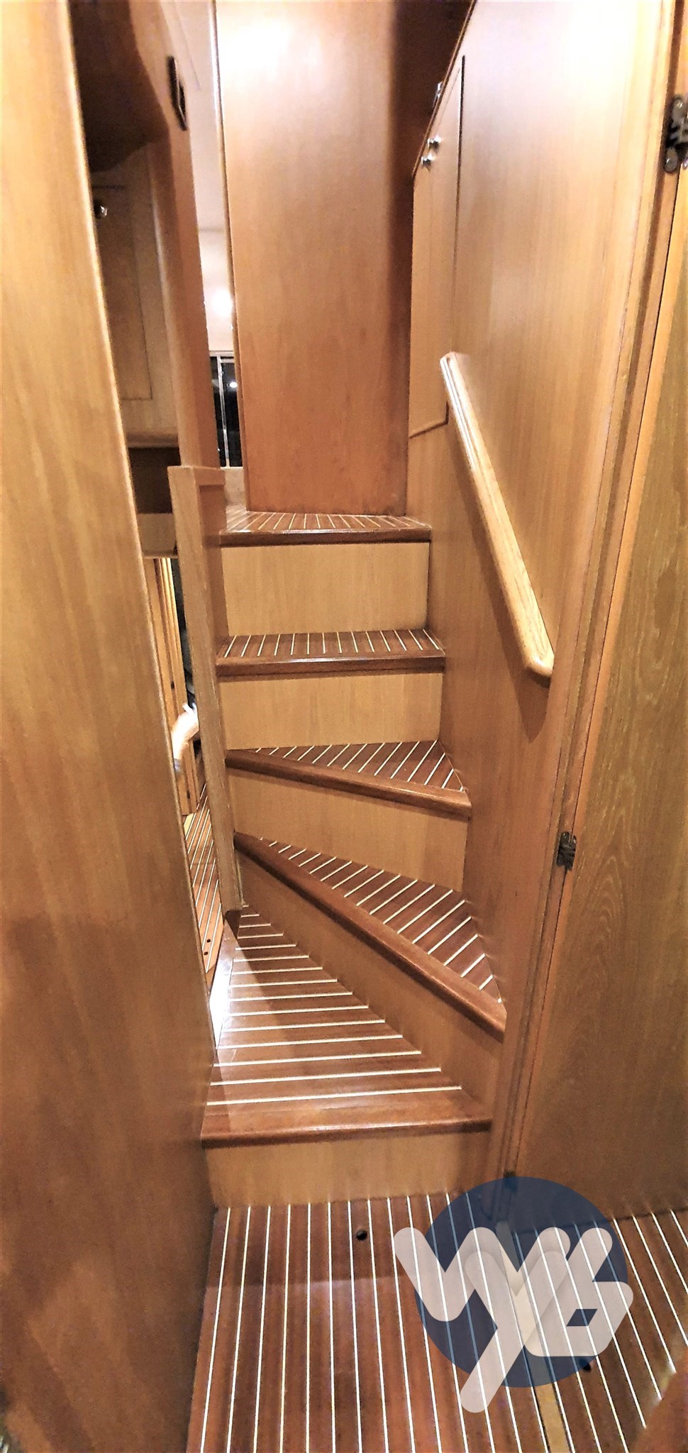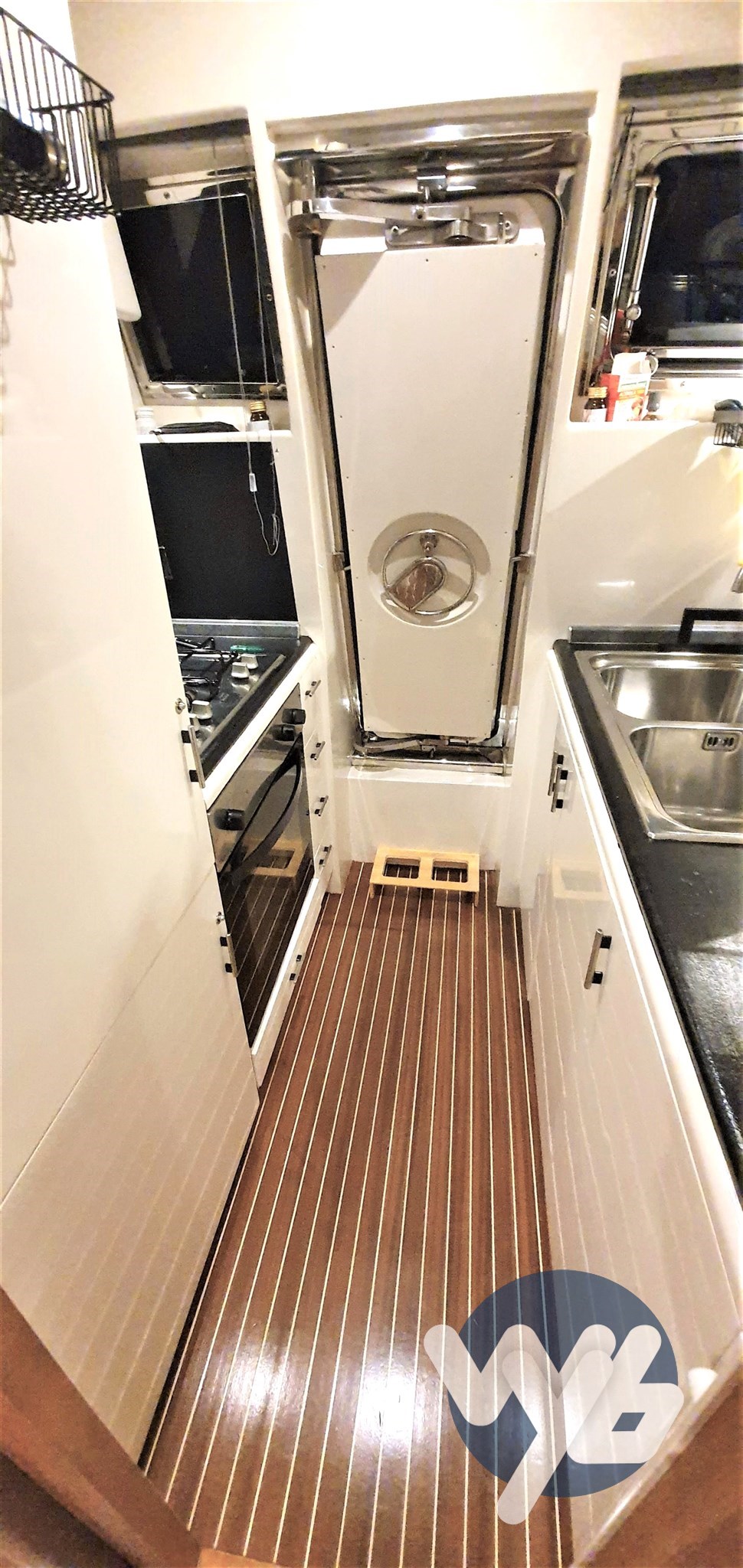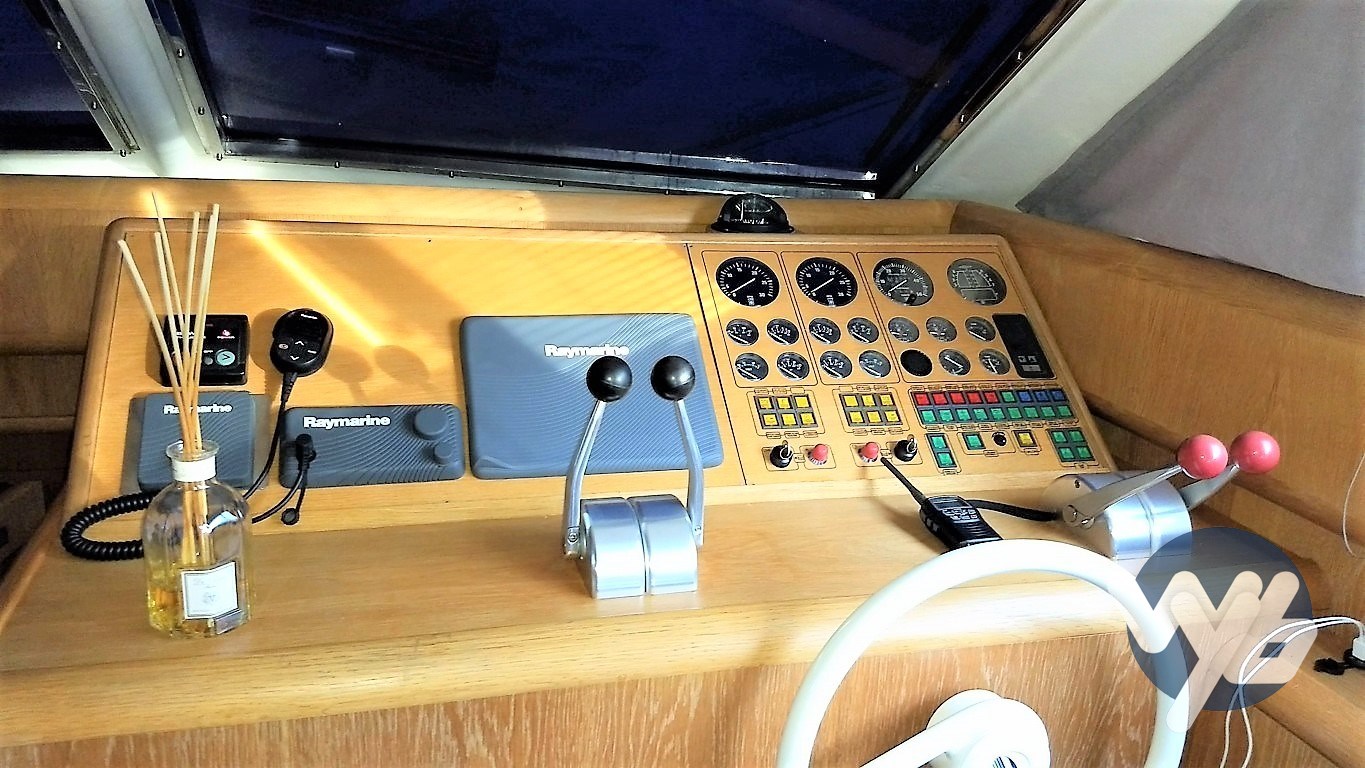 Nouvelle instrumentation : GPS. Pilote. Écho. Radar. Vhf. Centrale éolienne. Caméra d’amarrage arrière. Remplacement total de la moquette par un sol en acajou. Traitement complet du mobilier intérieur. Stores dans le salon et dans toutes les cabines. Coussins d’extérieur complets. Coussins intérieurs complets. Auvent de cockpit et passerelle d’équipage. Tenders et hors-bord. Table de cockpit et chaises. Salle à manger télé rétractable. Alarme antivol. Dôme satellite.