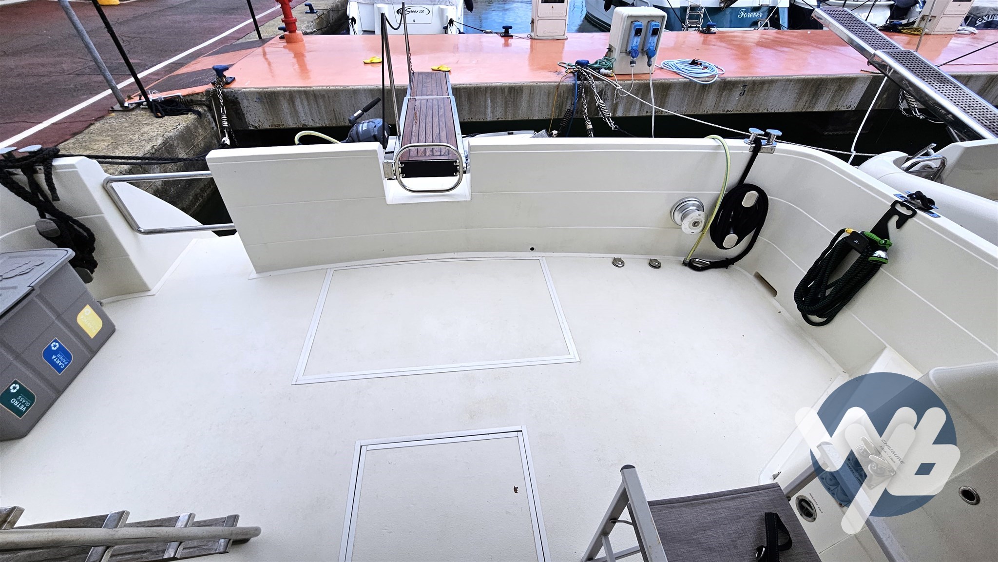 Cockpit antidérapant et plateforme arrière. Table de cockpit et chaises. Nouvel onduleur.