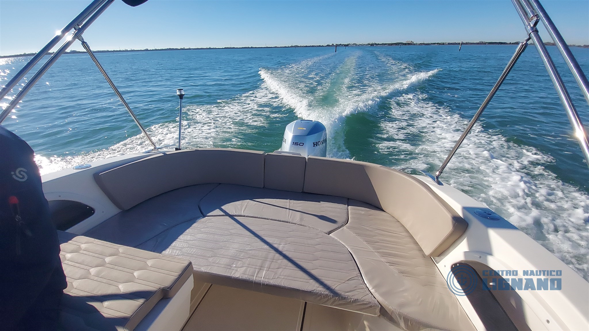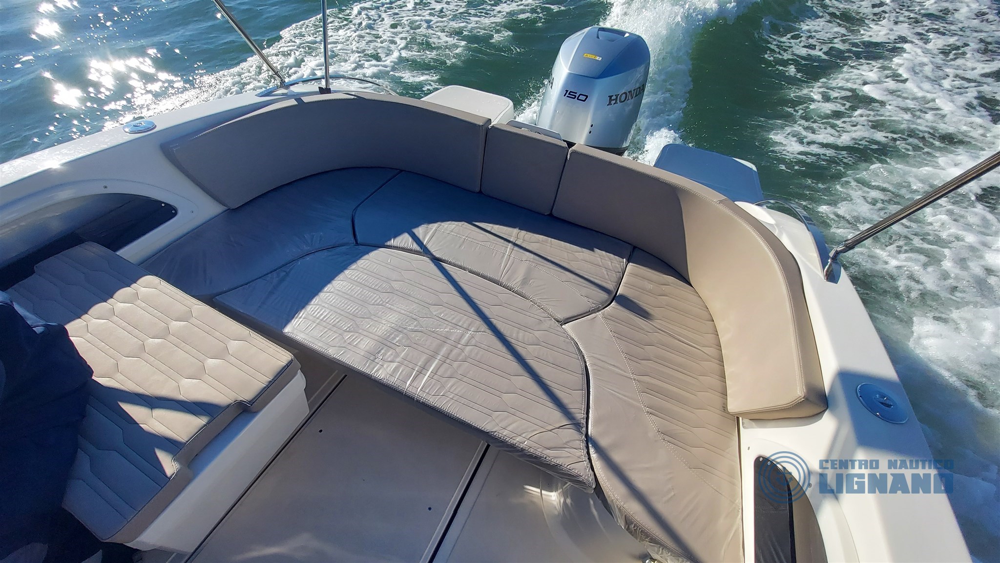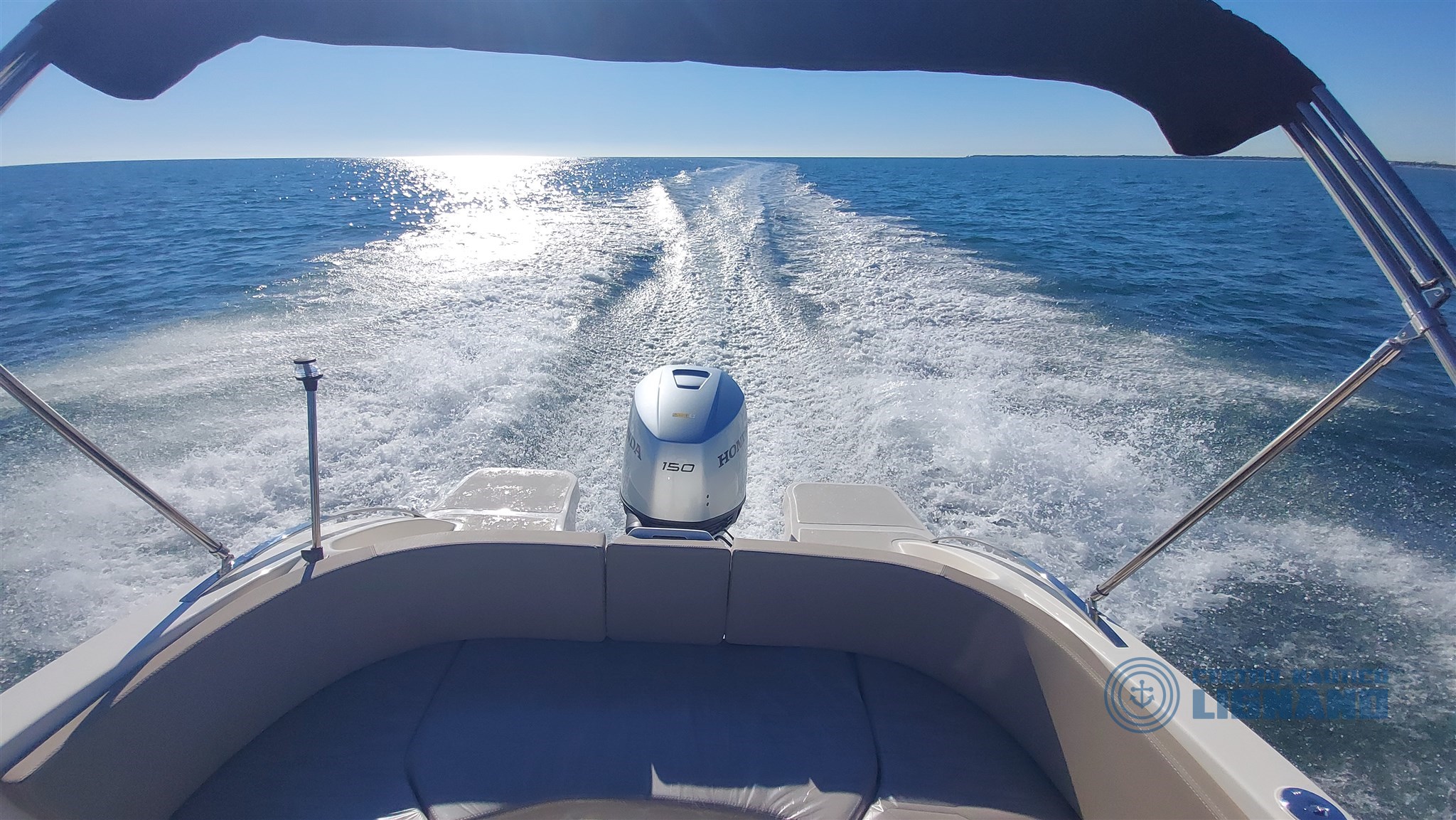 Eolo 6.4 EL 2026 neuve avec moteur hors-bord Honda Marine BF150 argenté, hélice en acier inoxydable, avec coussins beiges avec texture Lamborghini, système d’alimentation 96 lit, système d’eau et douche 39 lits, auvent noir en acier inoxydable à trois arcs, bouche d’égout, plateformes en teck synthétique (Evodeck), direction hydraulique, plateformes arrière avec échelle grimpable, feux réglementaires de navigation et d’ancrage, lumières de courtoisie dans l’habitacle, coque blanche, rouleau d’étrave, ancre manuelle, prise 12V, système électrique 12V avec tableau, boussole, toilettes chimiques, nouveau Honda Marine BF150 Silver Aquamarine hors-bord, premier instrument SVH85. Bateau tout neuf prêt à être livré ! Bateau 2026 avec 2 ans de garantie et 5 ans sur le moteur à partir de la date de facture. Centro Nautico Lignano, concessionnaire officiel Eolo Marine.