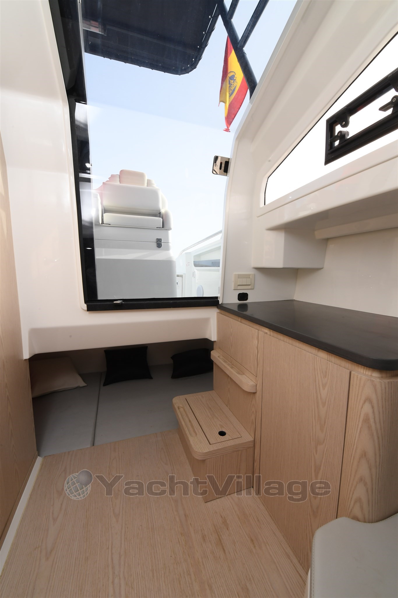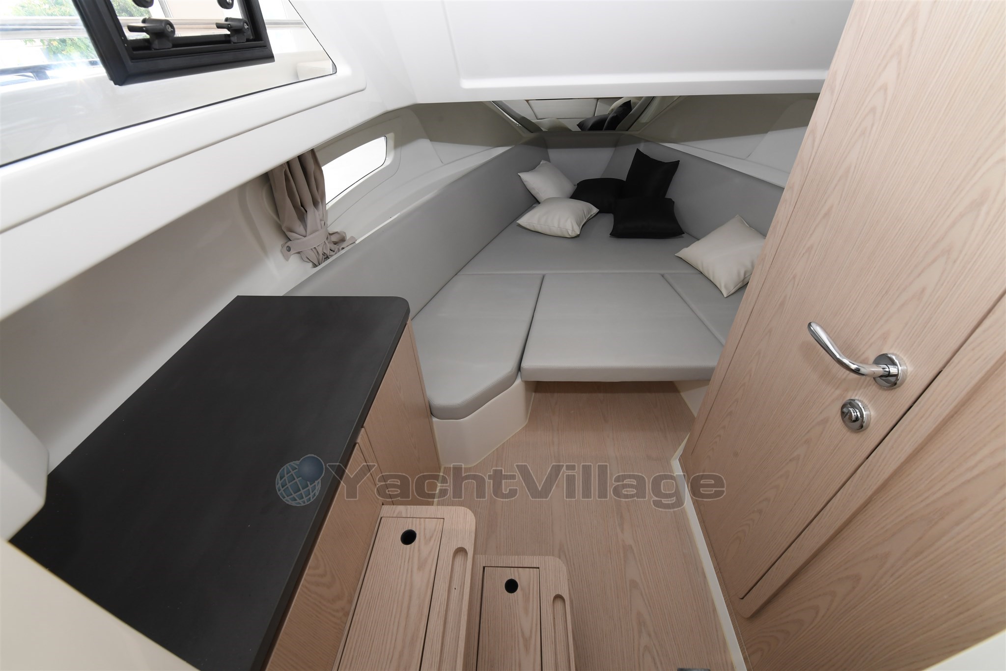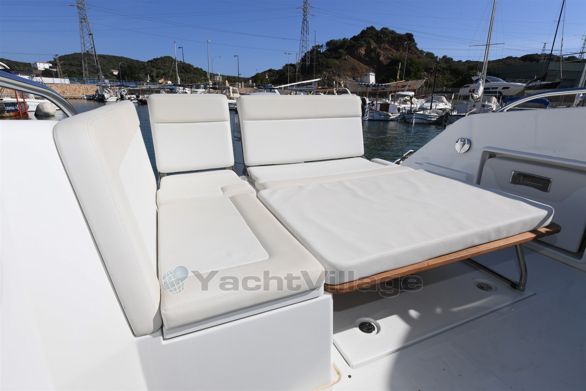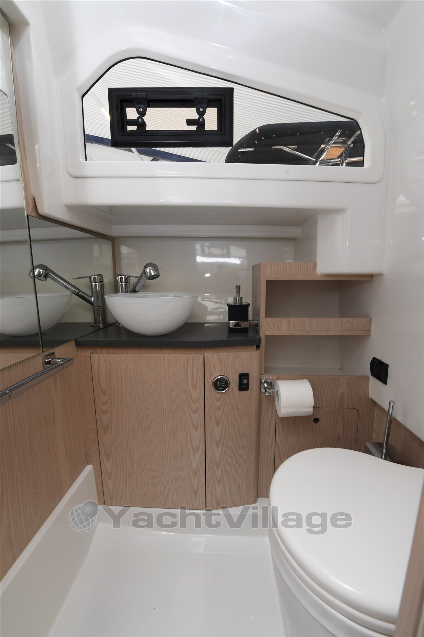 Accessori di serie :bitte in acciaio inox cabina di poppa con oblò cabina suite con arredamento completo Top Class corrimano acciaio inox cruscotto verniciato Perlage fornello impianto doccia esterno impianto per batteria servizi luci di navigazione musone inox a prua panca di poppa salvaspazio passo d'uomo ponte e oblò in cabina pompa sentina automatica portaoggetti scaletta poppa serbatoio acqua 75 lt stacca batteria Stand-Up pilota e copilota attrezzato tessuti Elegance BMA tavolo interno cabina tasche laterali tende interno cabina timoneria idraulica tromba vano WC, spogliatoio, doccia e lavello verricello elettrico con ancora inox volante Touring Elegance Wc nautico con serbatoio e valvola a tre vie plancette extralunghe cuscineria di prua