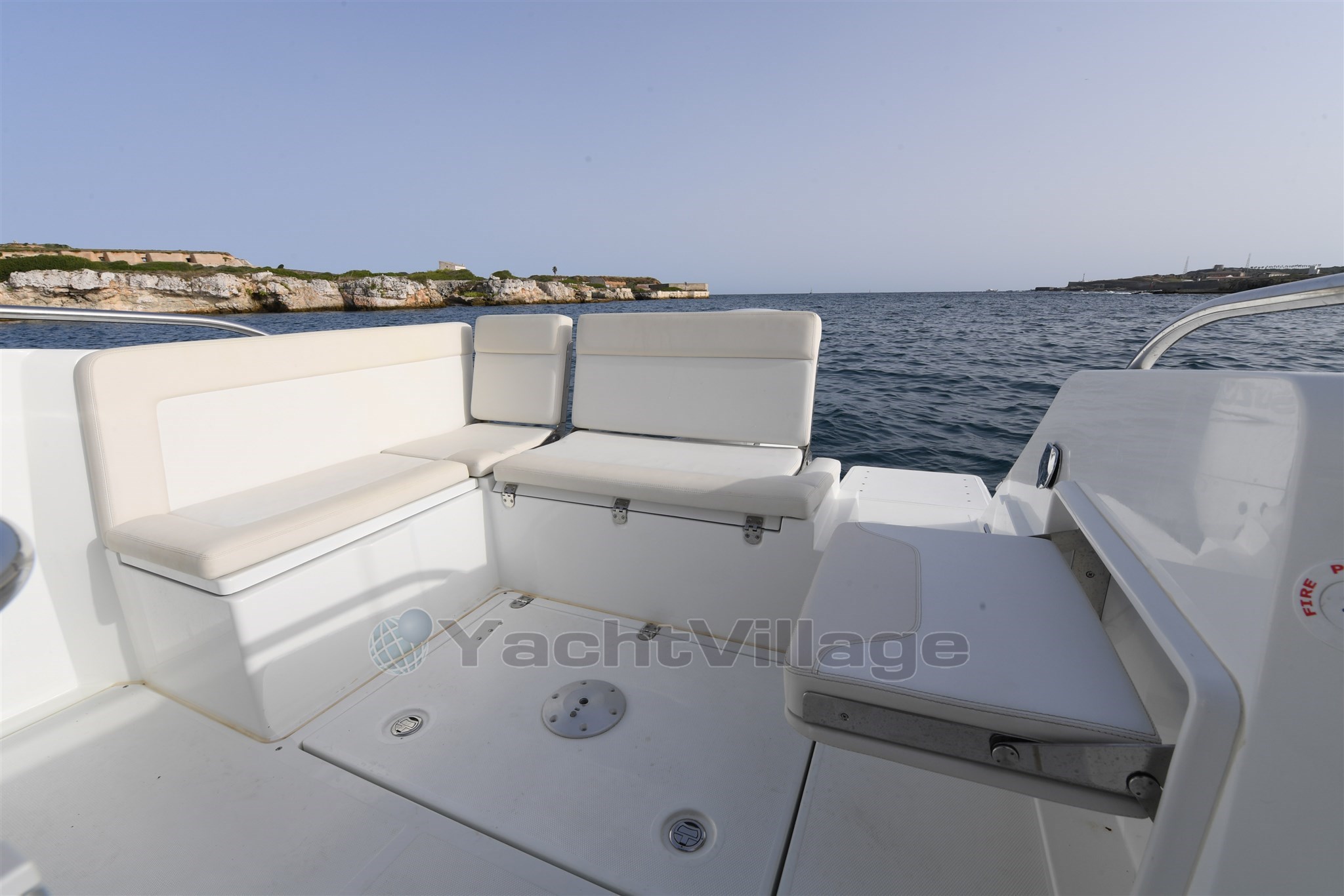 Optional : cuscineria prendisole di prua GPS/ECO 9 con impianto stereo impianto carica batterie e cavo banchina luci a led pozzetto plancette extralunghe tavolo e prolunga prendisole di poppa tendalino parasole con 4 pali in carbonio MOTORI HONDA motore Honda BF 150 silver completo di comando a chiesuola CERTIFICATI CE E DOCUMENTI