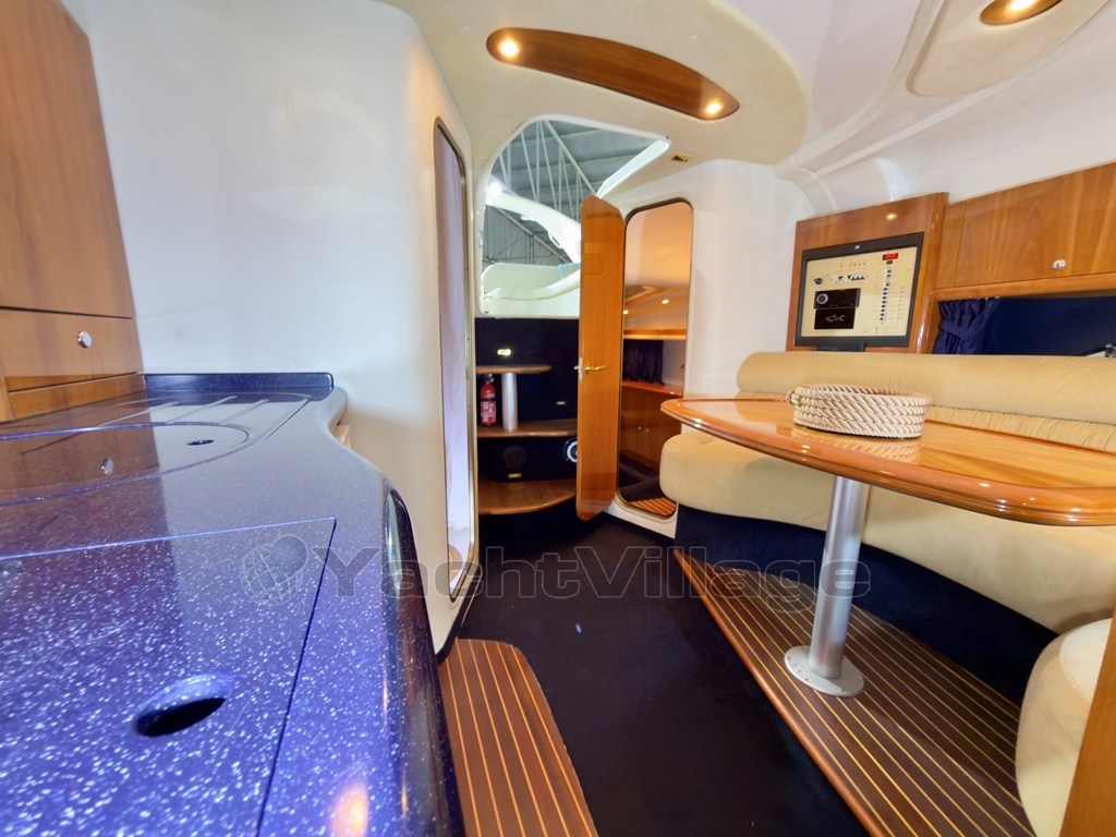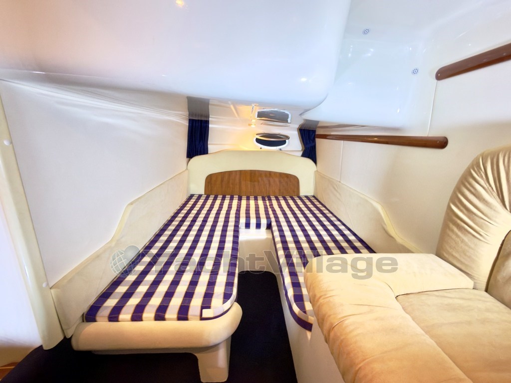 Il Cranchi Zaffiro 34 è un classico purosangue italiano, è stato un successo di lunga data per Cranchi. Offre spazi interni sorprendentemente ampi e ben distribuiti per la sua categoria. Le parti esterne: Ineguagliabili. Il pozzetto esterno è strepitoso: contiene con una eleganza inusuale e un ordine logico di efficienza, a Vs. disposizione tutto di ciò che necessita per Confort, Relax, Wellness. Le parti interne: Sono sorprendentemente moderne ampie e ben distribuite per la sua categoria. Ben arieggiato e luminoso il salone, con locali separati; per maggior privacy le cabine sono entrambe chiuse con propria porta di accesso. La motorizzazione: E' la massima potenza installata su questo modello; la migliore possibile in termini di affidabilità e la più attuale: monta due VOLVO PENTA D4 da 260 HP, con moderni piedi poppieri DPH a doppia elica.
