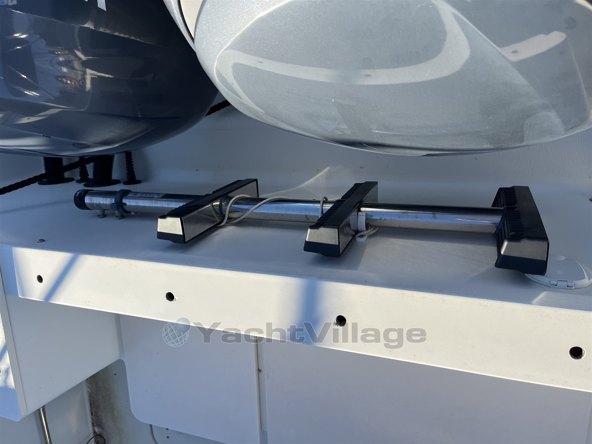 Pursuit 2670 del 2005 con due Yamaha da 225 hp con cabina con letto matrimoniale e wc a scomparsa. Porta canne . Vasca vivo e pescato . 4 attacchi per mulinelli. GPS Raymarine c120, pilota raymarine, Vhf . TTop . Cuscineria esterne nuove ancora da montare. Impianto Minn Kota elettrico per la pesca nuovo