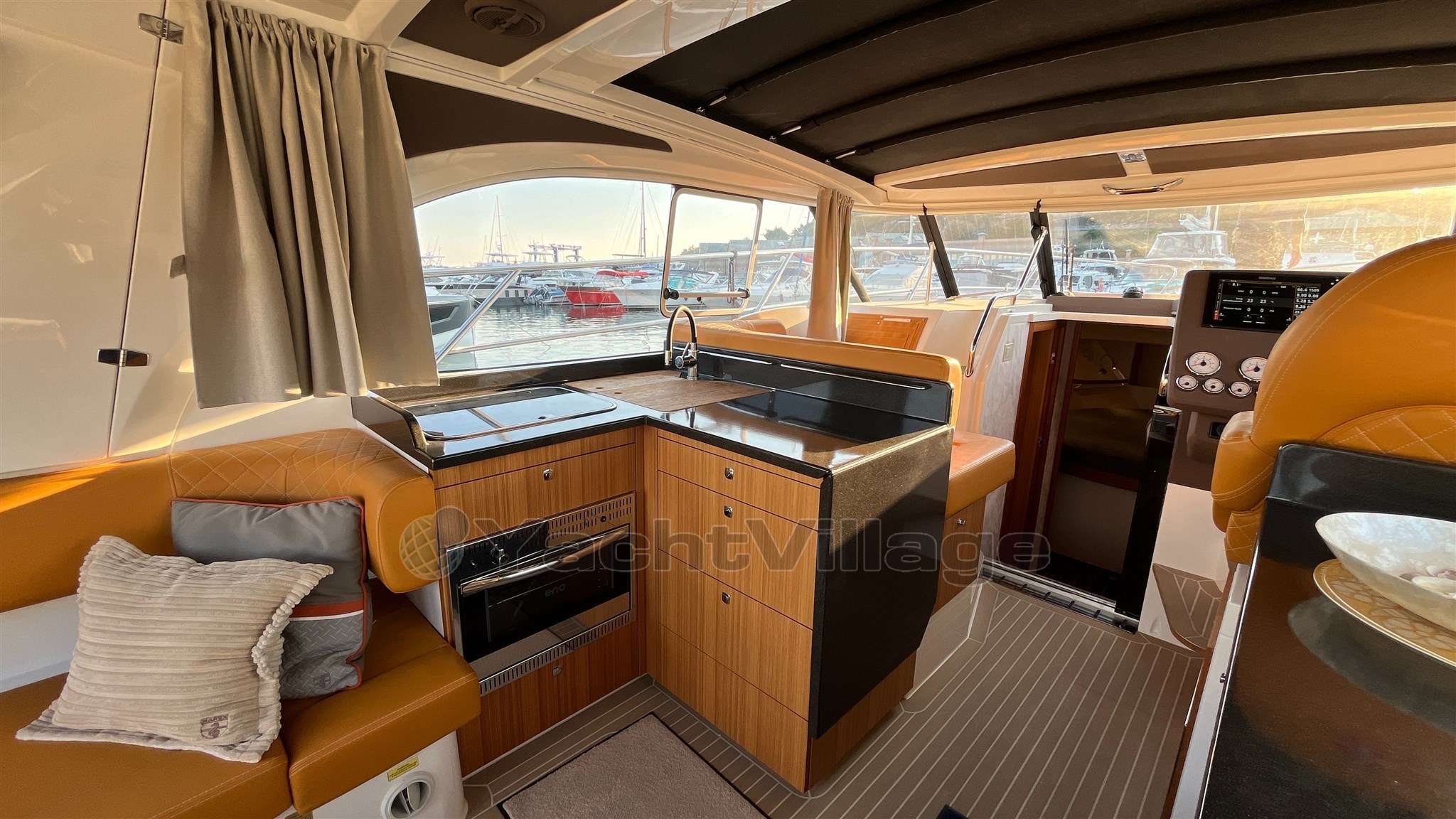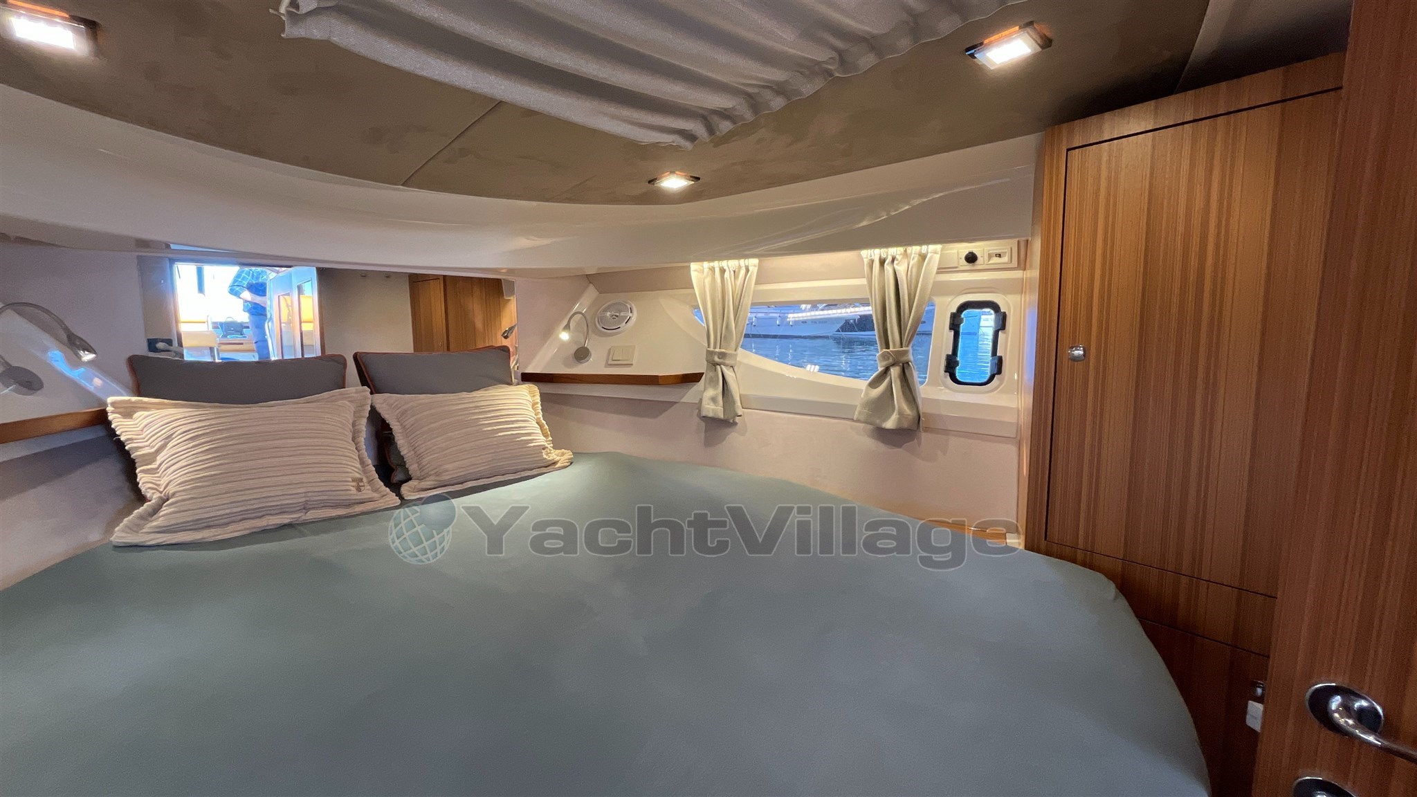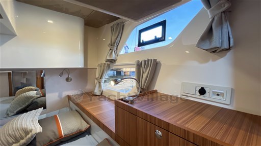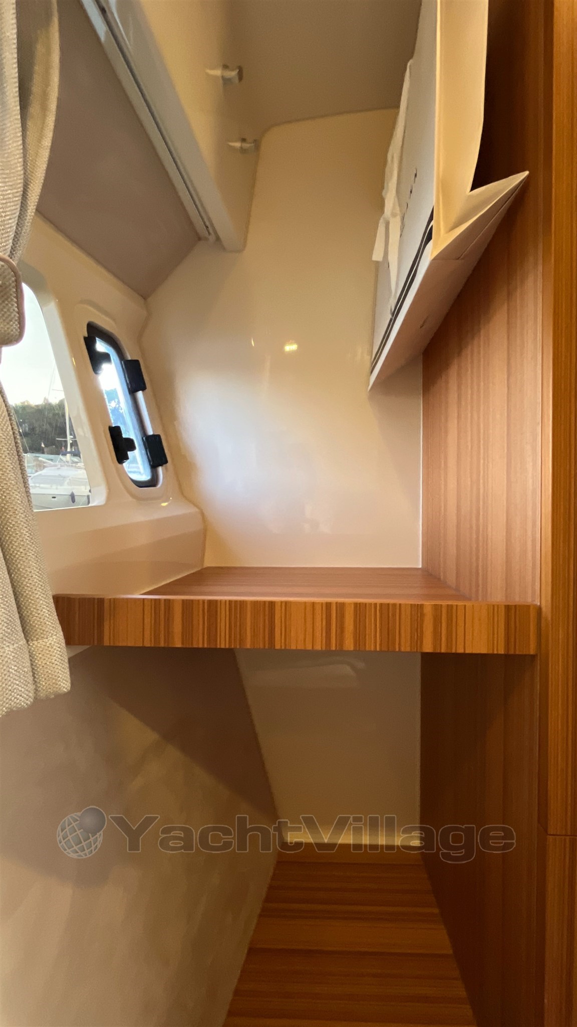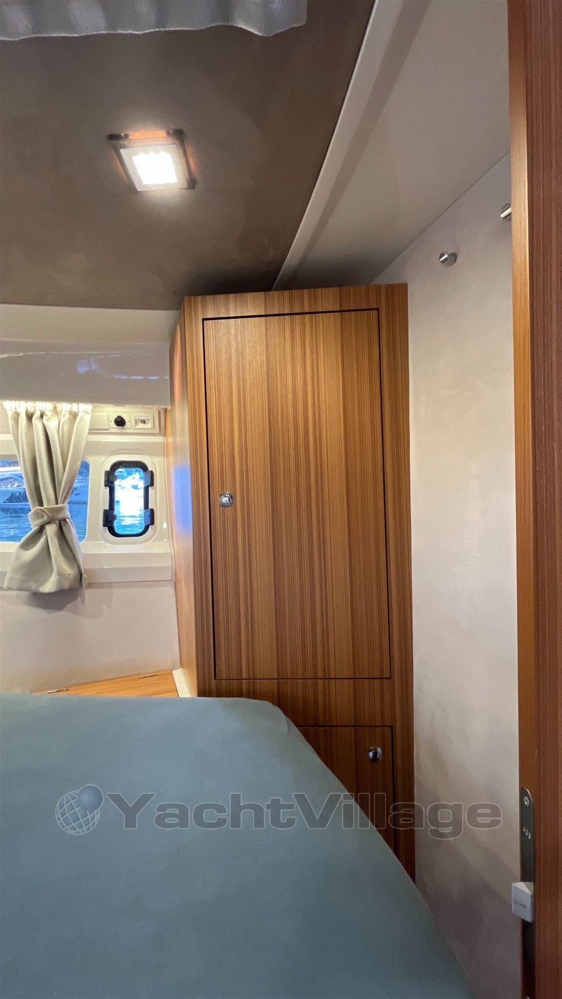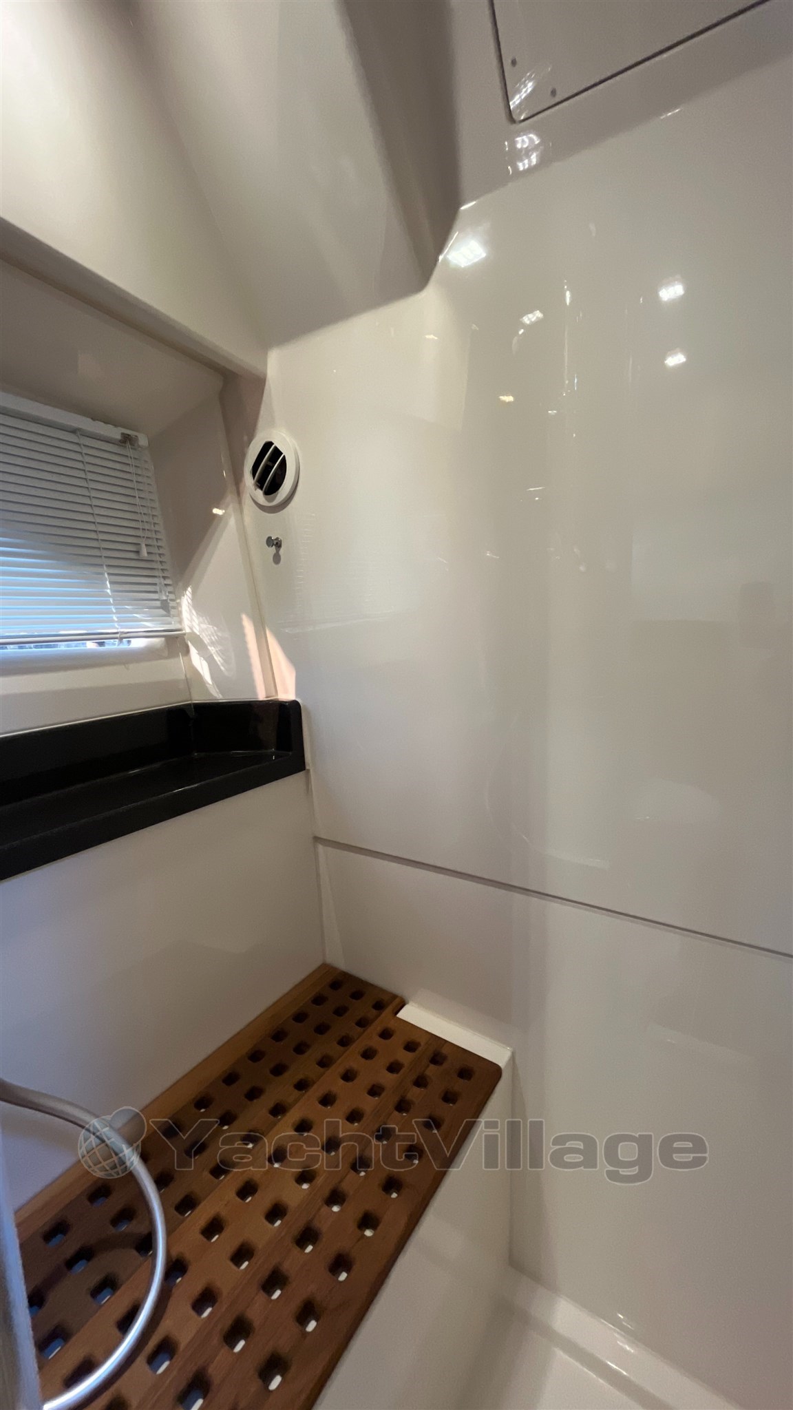 Elica di prua - Boiler - Strumentazione SIMRAD (GPS- Autopilota - Ecoscandaglio - Plotter) - Aria condizionata - Riscaldamento - Salpa ancora - Radio/Lettore CD + Speakers FUSION - Scafo grigio-bianco - 2 Tetti apribili- Joystick- Ancora digitale- Pannello solare- Teak interno ed esterno- Inverter- Impianto antincendio - Sensore di allarme gas - Accesso diretto al ponte di prua tramite porta nel parabrezza - Cuscineria completa - Smart canopy solution integrata per chiusura totale pozzetto