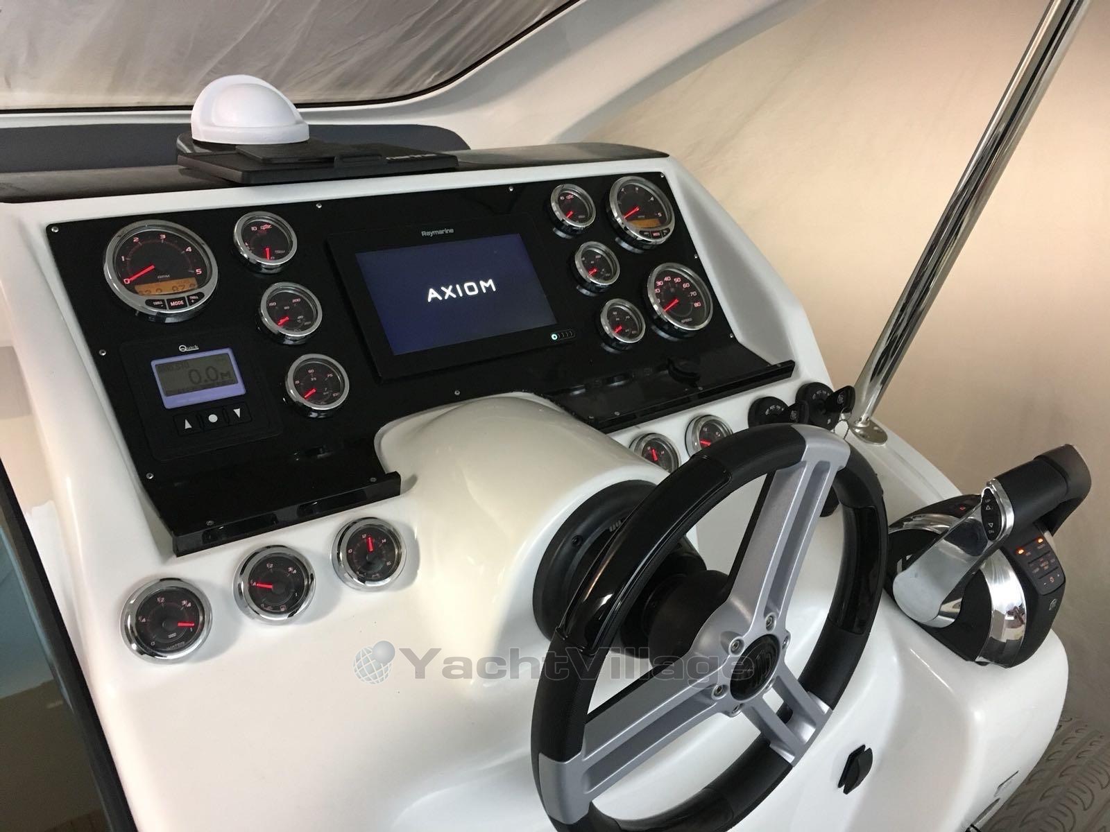 Il Pirelli Pzero 1100 consolle con hard top in carbonio da cui si accede ad un’ampia cabina con letto a due piazze , un piccolo armadio ed uno spazioso bagno indipendente con lavabo, wc e doccia. Enormi e comodi gli spazi prendisole con una dinette centrale con zona minibar dotata di frigo, lavello ed una spaziosa ghiacciaia. Questa unità ( anno 2018 ) , in acqua per soli tre mesi annui, è spinta da doppia motorizzazione Mercruiser 260 hp EFB a Gasolio con meno di 300 ore moto Sono compresi circuito banchina 220, GPS/ECO Raymarine, Radio stereo, wc elettrico, autoclave con doccia, plancetta di poppa e camminamenti di prua rivestiti in teak. Descrizione interni cabina con letto a due piazze , un piccolo armadio ed uno spazioso bagno indipendente con lavabo, wc e doccia. Strumentazione GPS - ECO, verricello elettrico Dotazioni armamento Cuscinerie complete, frigorifero , radio stereo