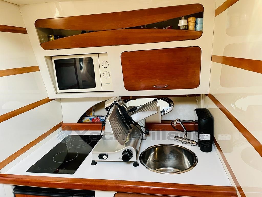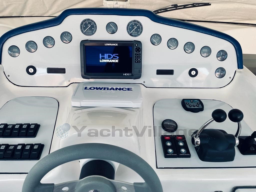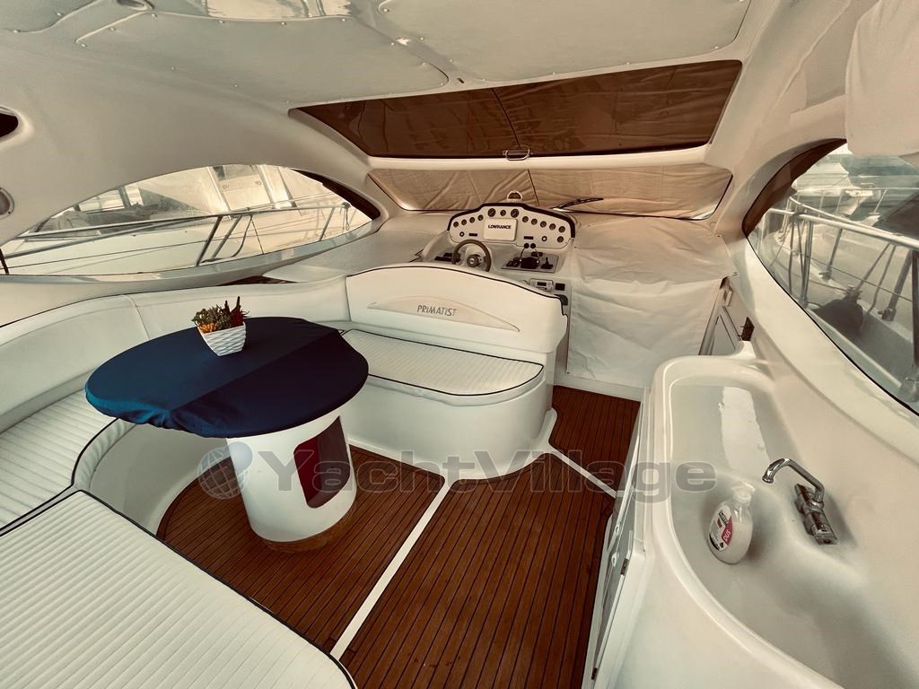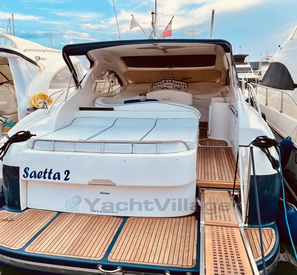 Primatisti G41 del 2003 con due Volvo Penta Kad 300 da 285hp con 1050 ore moto cabina matrimoniale di prua con proprio bagno, cabina centrale con letto matrimoniale più lettino e secondo bagno . Dinette con cucina attrezzata. 2022 carena a zero, antisdrucciolo per i passavanti, lucidatura tuga. pellicolato Hard top. aggiunte luci subacque , pellicolati vetri , trattamento serbatoi , telecomandi nuovi passerella, comando elica prua nuovo, indicatori carburante nuovi, profondimetro nuovo, quadro comandi nuovo, luci led e interruttori nuovi, tappezzeria nuova interna, revisionati impianti sanitari, piano cottura induzione nuovo, scalini nuovi , autoradio nuova, impianto tv nuovo, tv esterna tagliando completo, sostituiti turbo compressori, sostituito compressori volumetrici, sostituiti cablaggi elettrici motori, Accessori aria condizionata caldo freddo, generatore cassaforte .2024 lucidato lo scafo sostituite due eliche duo Prop, sostituita una pompa di sentina e rinnovata la scheda la zattera di salvataggio. antirombo sala macchine. Antivegetativo Nuovo, 2025 rimessagio e manutenzione piedi poppieri