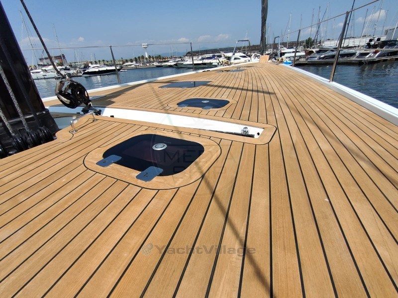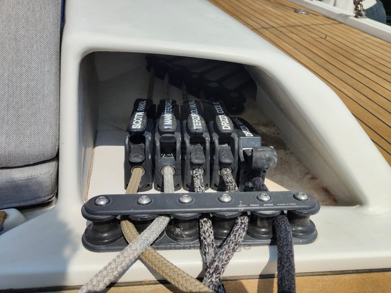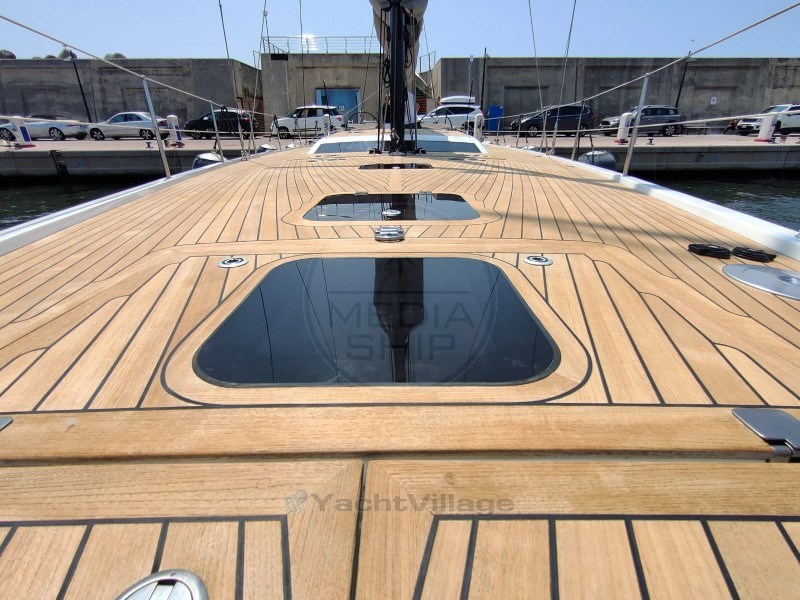 The SOLARIS 58 is exceptionally well equipped, featuring: carbon mast, boom, steering systems and gangway; teak deck; retractable bow thruster; generator; watermaker; air conditioning; 2 electric winches plus a retractable mooring winch at the bow; full B&G electronics with 3 mast-mounted jumbo displays; electric furlers for both jib and Code 0; hydraulic stern platform; longitudinal tender garage with electric winch; retractable sprayhood; cockpit sun awning with carbon poles; bimini top; teak cockpit table; bleached oak interiors (3 cabins each with private bathroom and shower booth + crew cabin with WC); fully equipped kitchen with double fridge, freezer, dishwasher and washer-dryer; safe; Fusion Hi-Fi system. Regularly maintained and upgraded, in 2021 new carbon sails (including a never-used gennaker) and new cockpit upholstery. Like-new condition, ready to sail. - Check the full brochure, the video and the sea trial on our Web site MEDIA SHIP