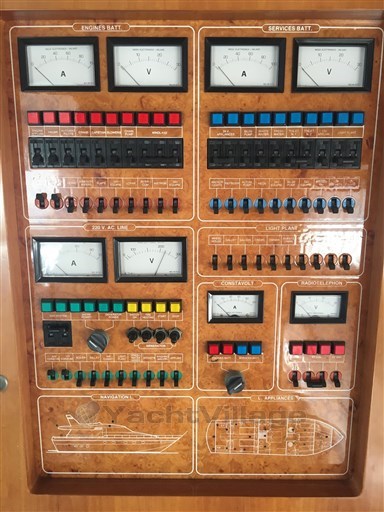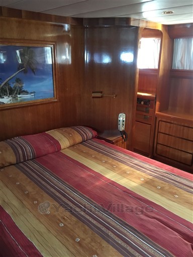 Cabine principale, deux cabines doubles et trois salles de bains, grande salle à manger avec cuisine de cuisine, timonerie et carte
